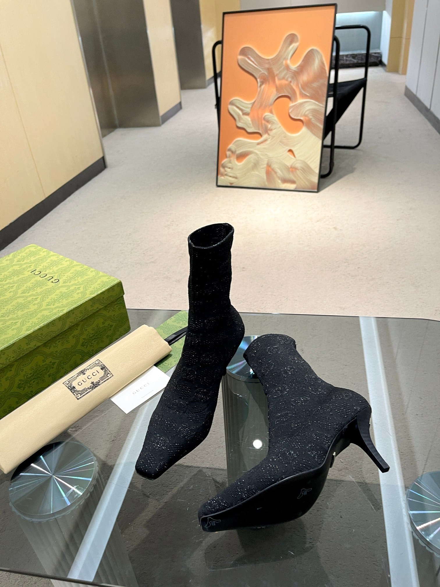 • Gucci Women’S Gg Knit Ankle Boots Black 718378 Facfm 8720