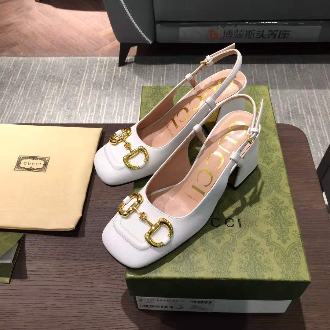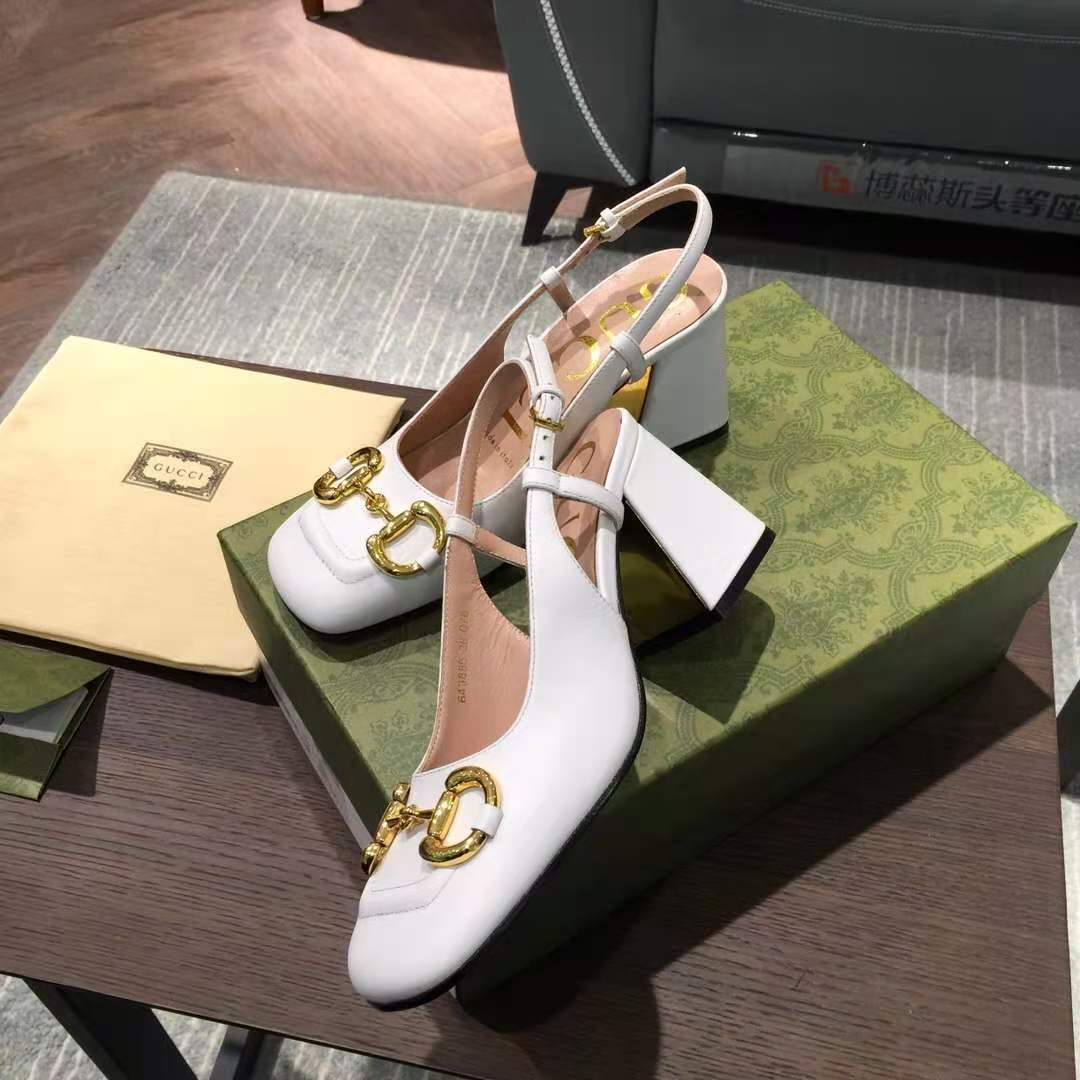 • Gucci Women?S Mid Heel Slingback With Horsebit White ?643892 C9D00 9022