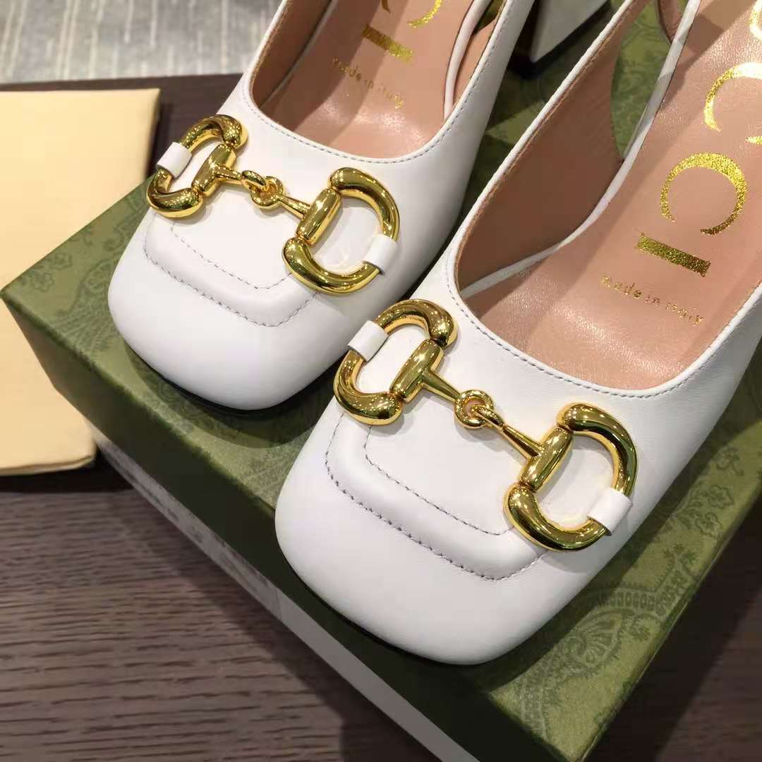 Gucci Women?S Mid Heel Slingback With Horsebit White ?643892 C9D00 9022