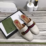 • Gucci Women?S Princetown Leather Slipper White 629084
