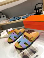 Hermes Chypre Flat Sandals Denim Brown