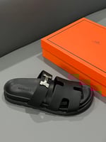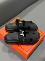 • Hermes Chypre Sandal H Logo Silver Hardware Black