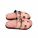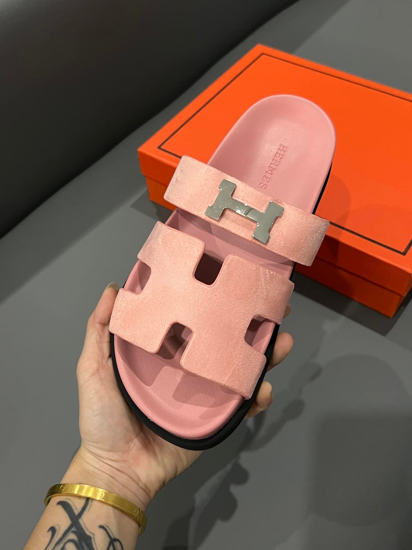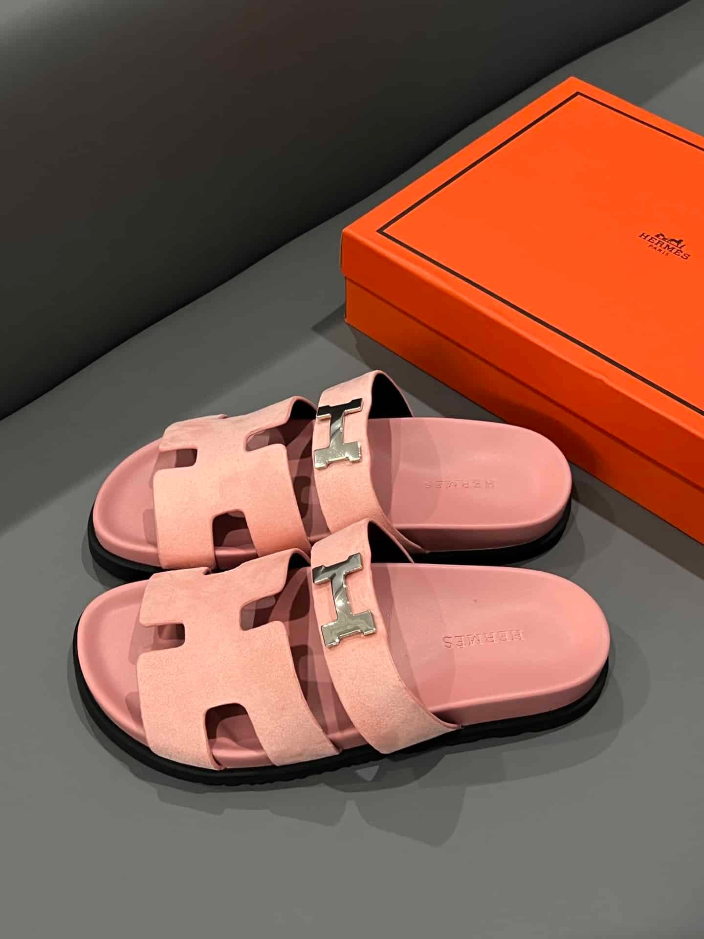 Hermes Chypre Sandal H Logo Silver Hardware Pink