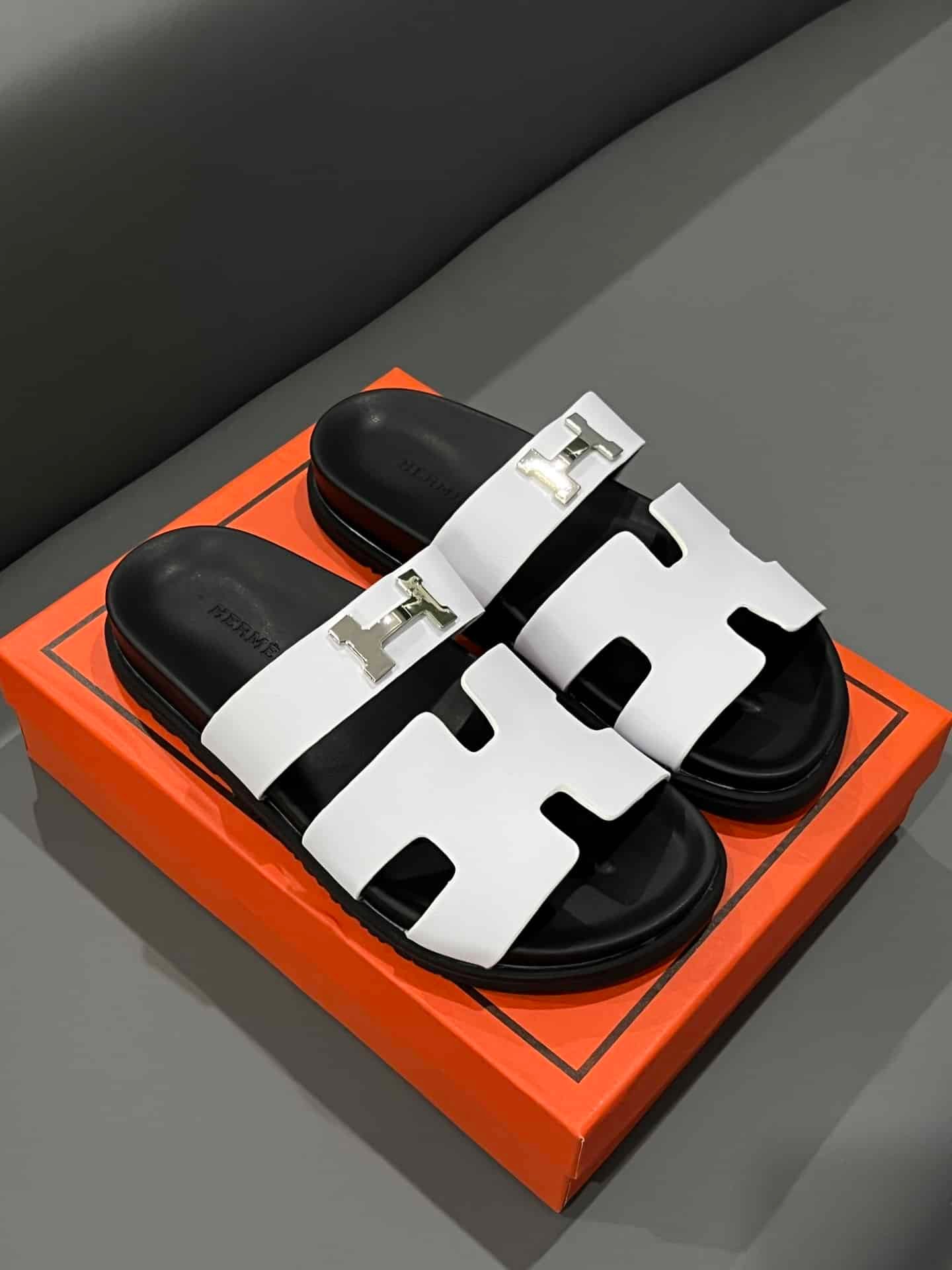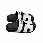 Hermes Chypre Sandal H Logo Silver Hardware White