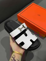 • Hermes Chypre Sandal H Logo Silver Hardware White