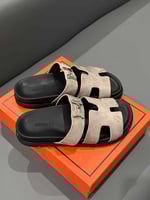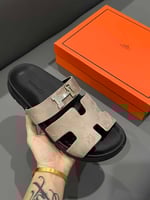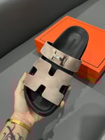 Hermes Chypre Sandal Suede H Logo Silver Hardware Light Brown