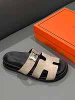 • Hermes Chypre Sandal Suede H Logo Silver Hardware Light Brown