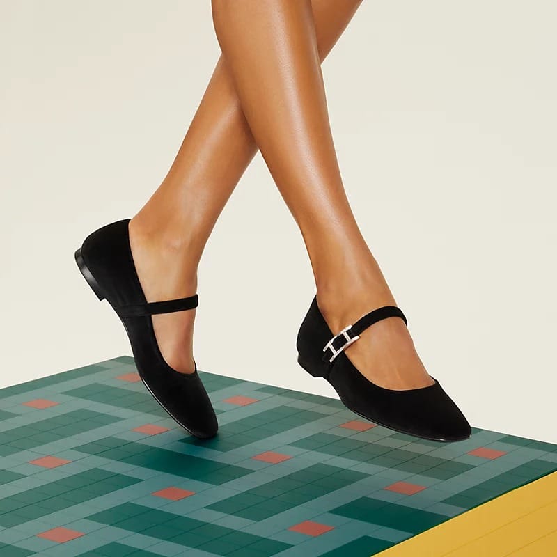 • Hermes Jane Ballet Flat In Velvet Noir H242046Z 02370