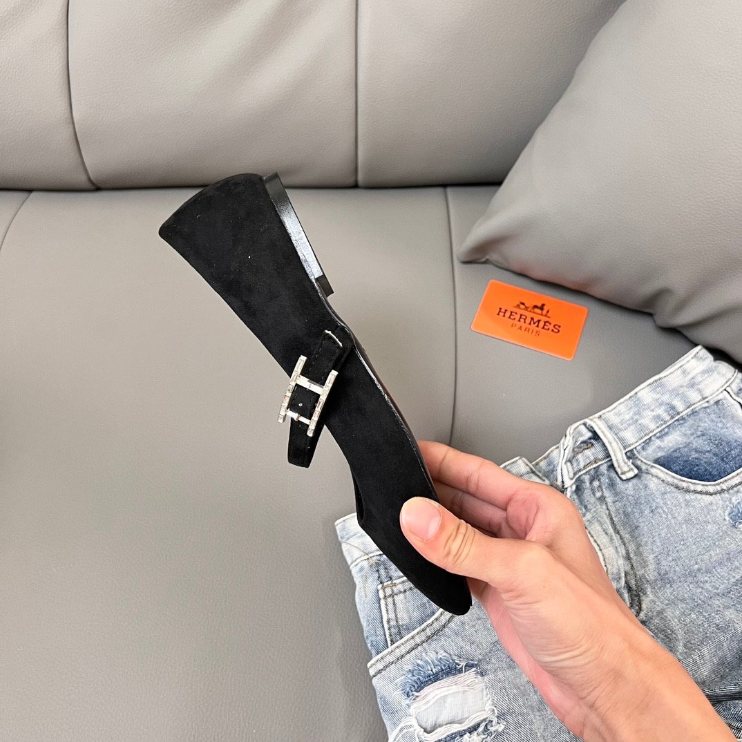 Hermes Jane Ballet Flat In Velvet Noir H242046Z 02370