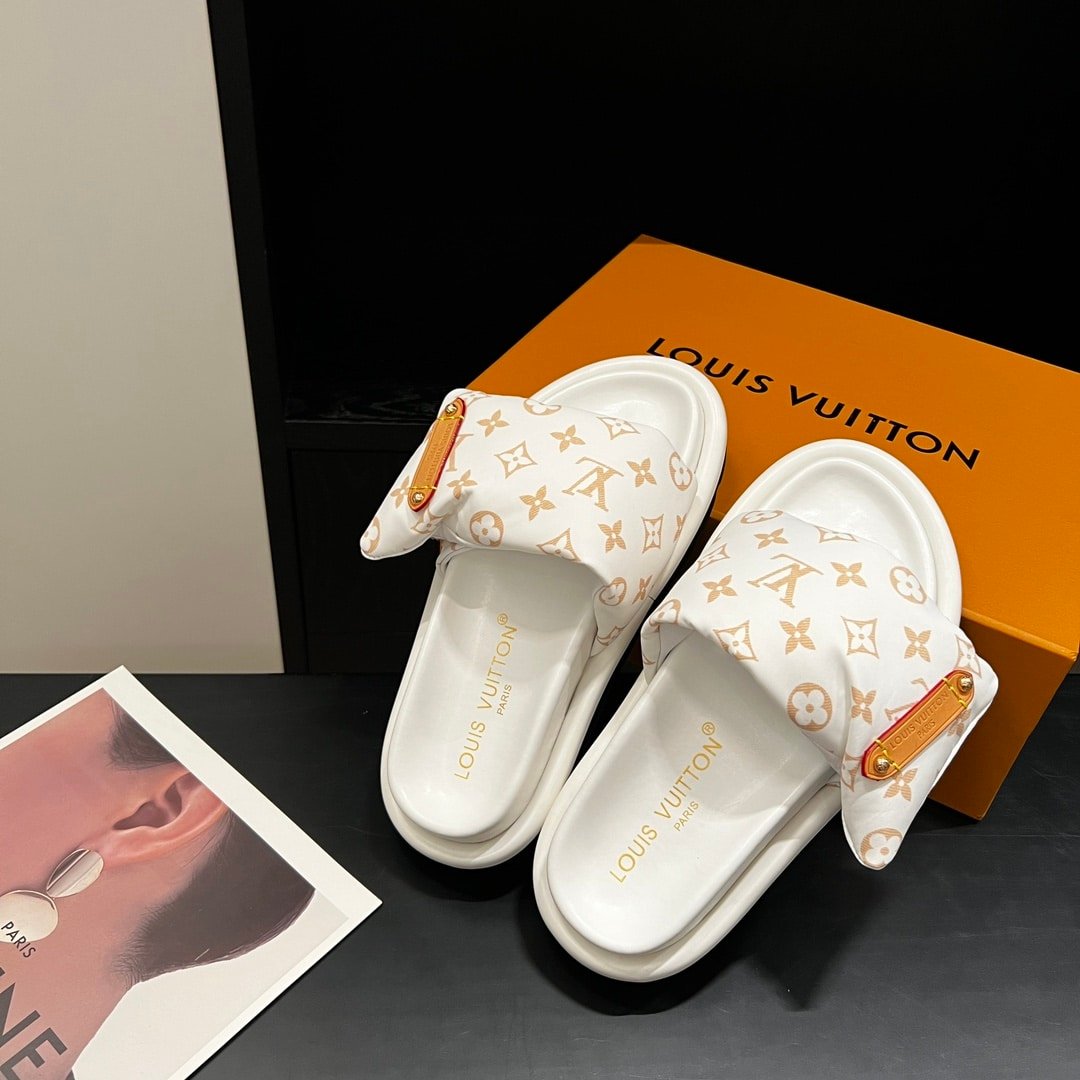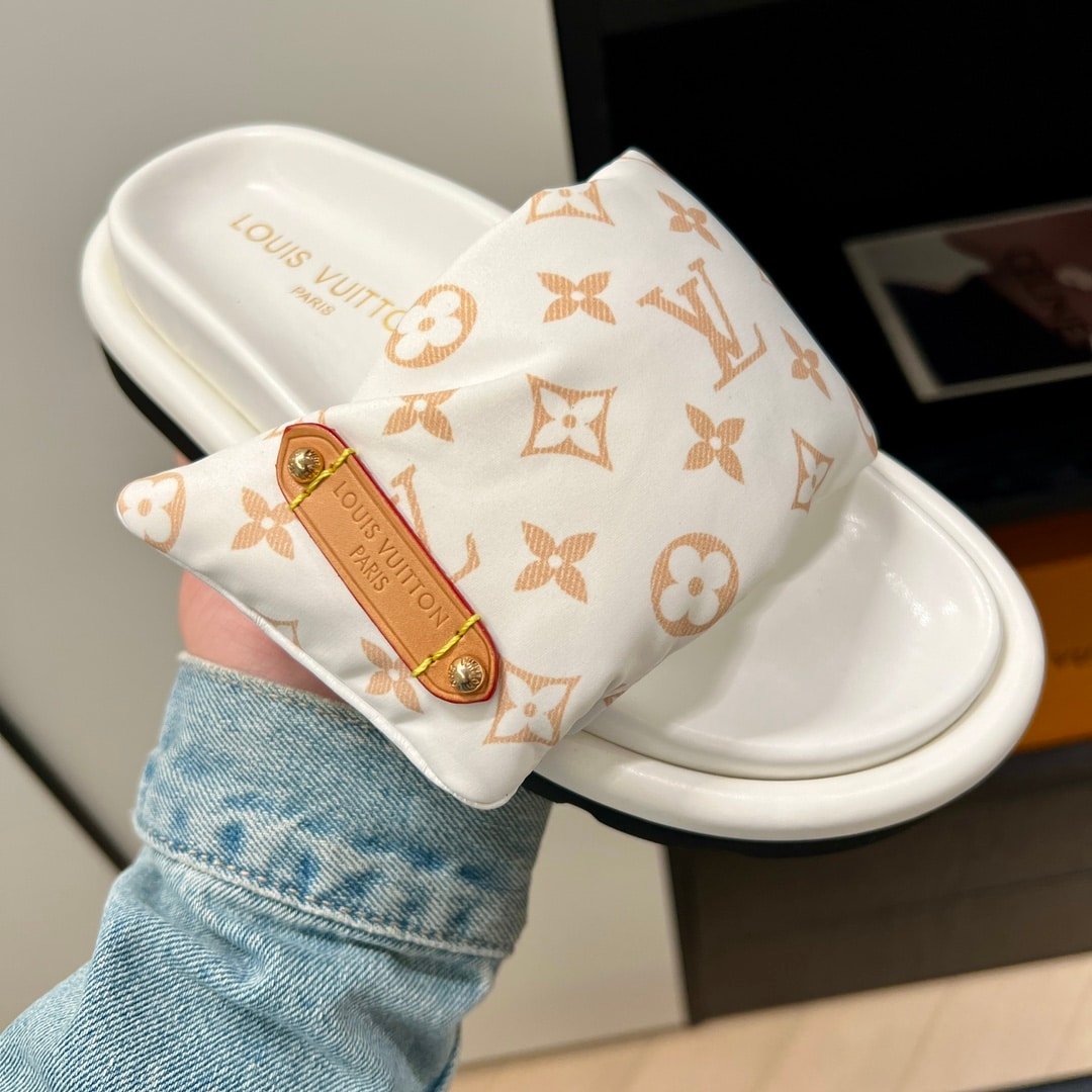 • Louis Vuitton Pool Pillow Flat Comfort Mule Sandals Beige 1Acjza