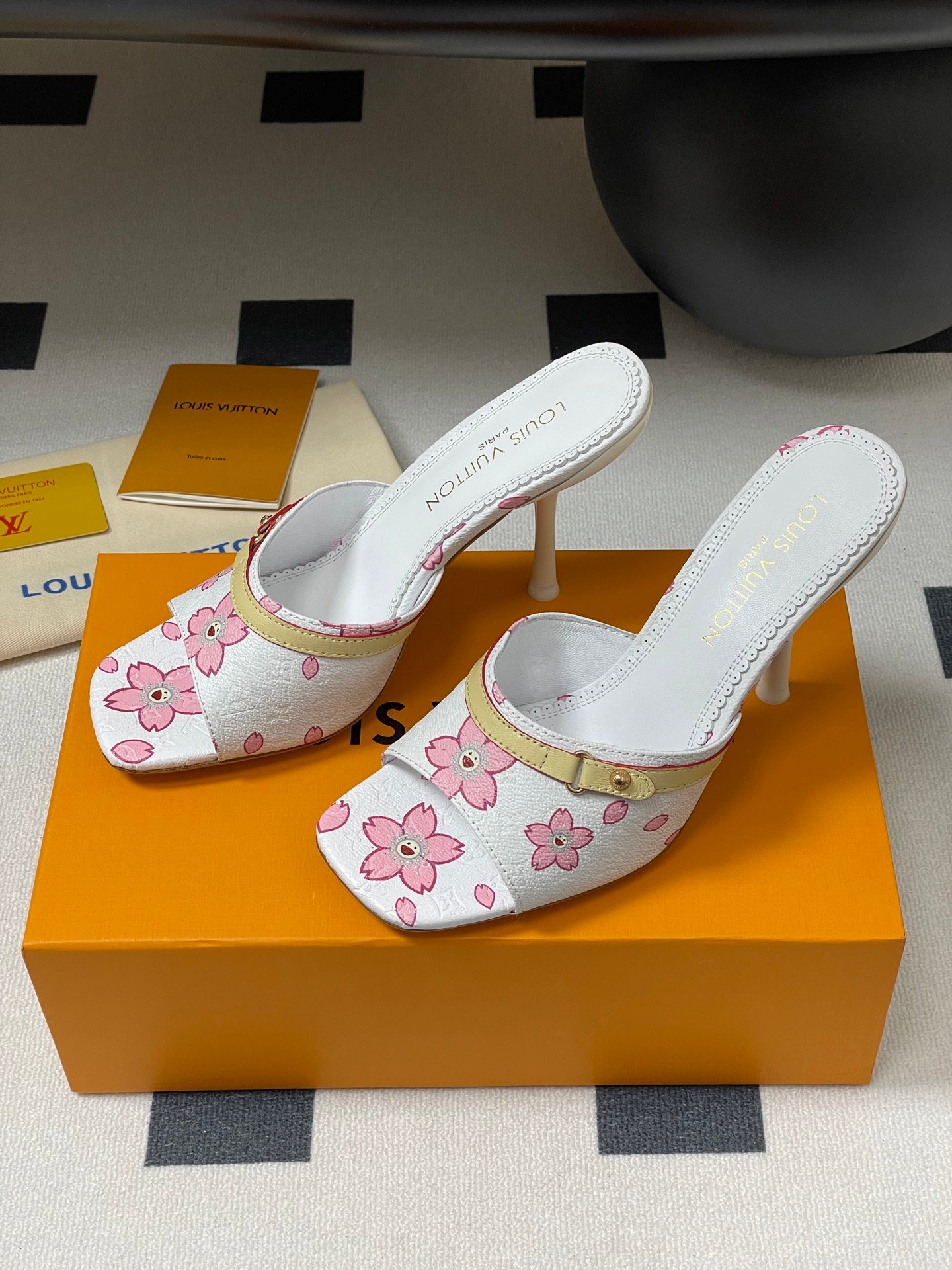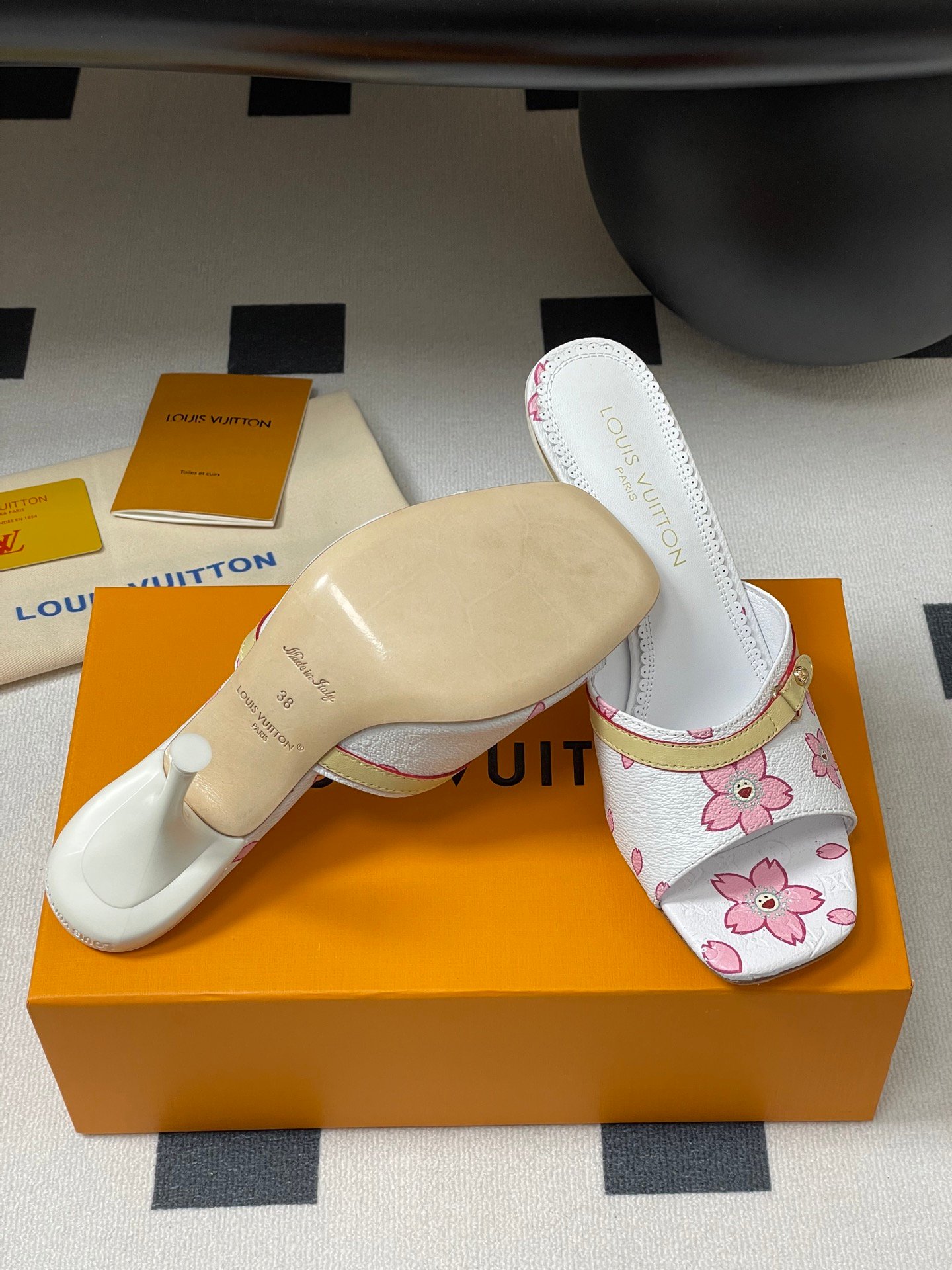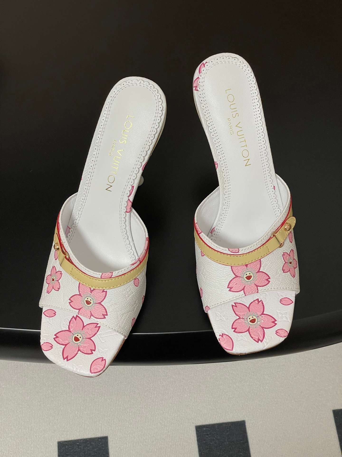 • Louis Vuitton x Takashi Murakami Cherry Blossom Mule White Monogram Canvas