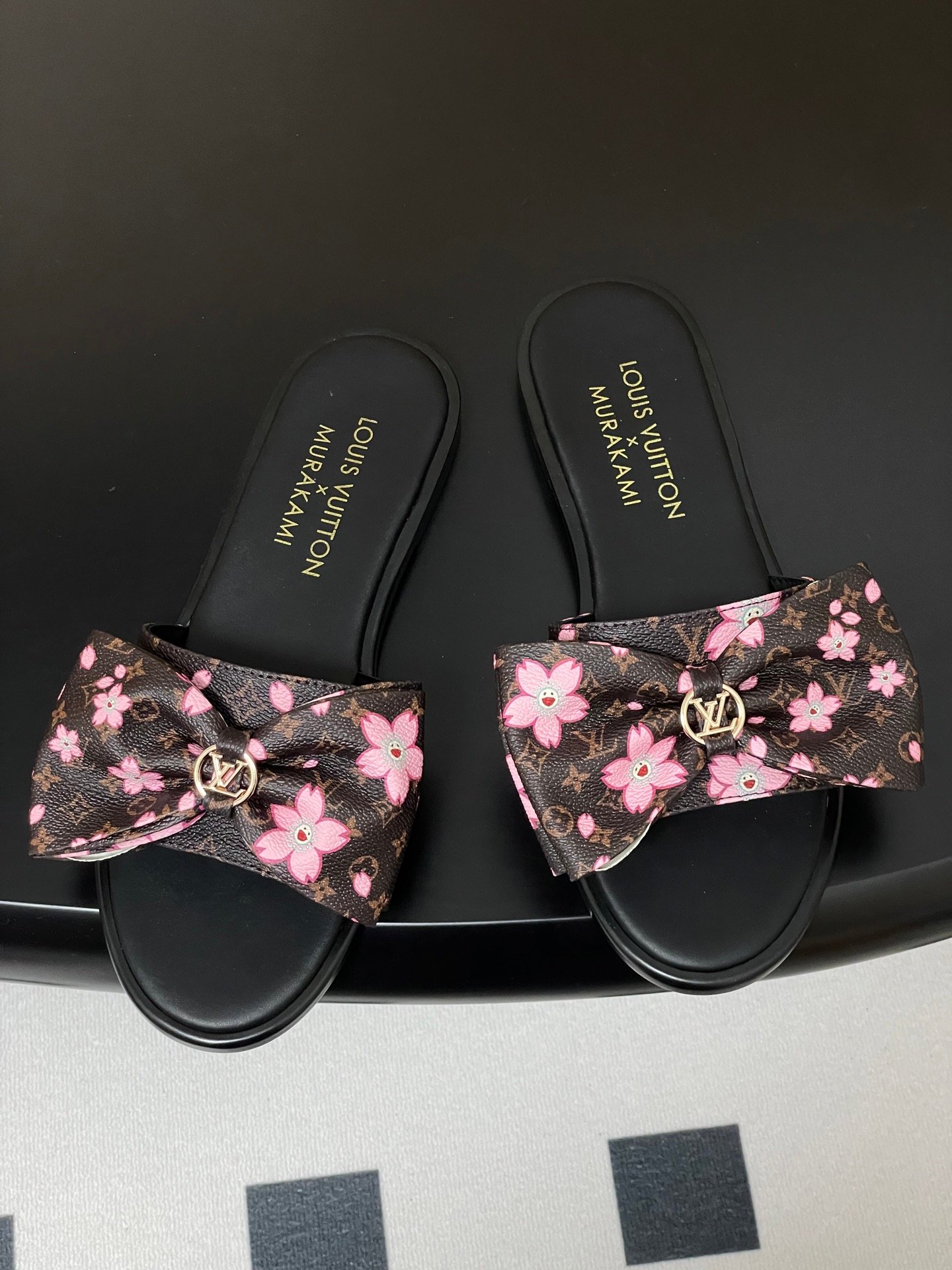 • Louis Vuitton x Takashi Murakami Lily Flat Mule Bow Slide Sandals Black 1AGVYA