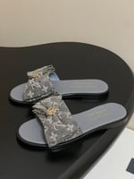 Louis Vuitton x Takashi Murakami Lily Flat Mule Bow Slide Sandals Grey Canvas 1AGVYA
