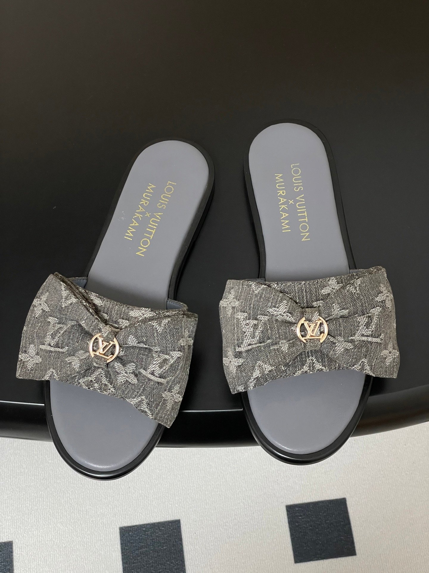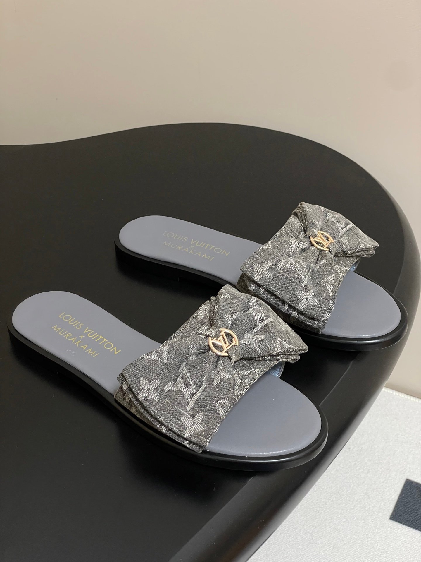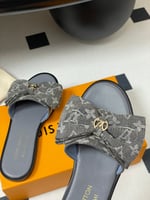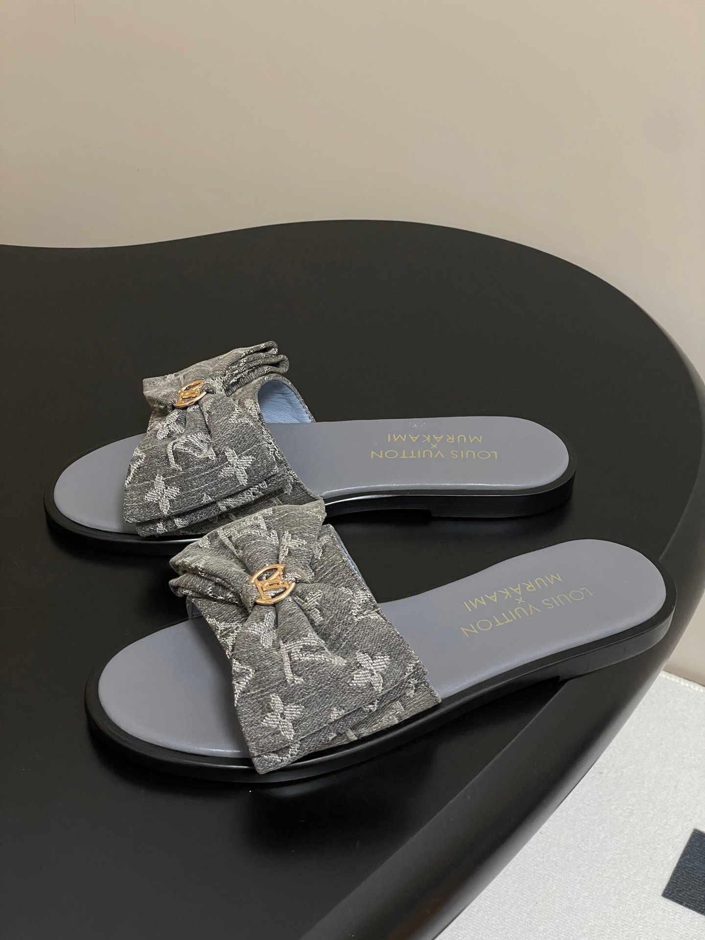 • Louis Vuitton x Takashi Murakami Lily Flat Mule Bow Slide Sandals Grey Canvas 1AGVYA