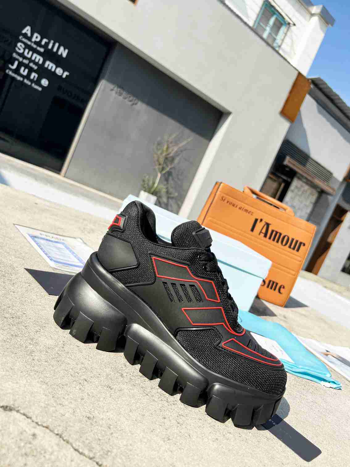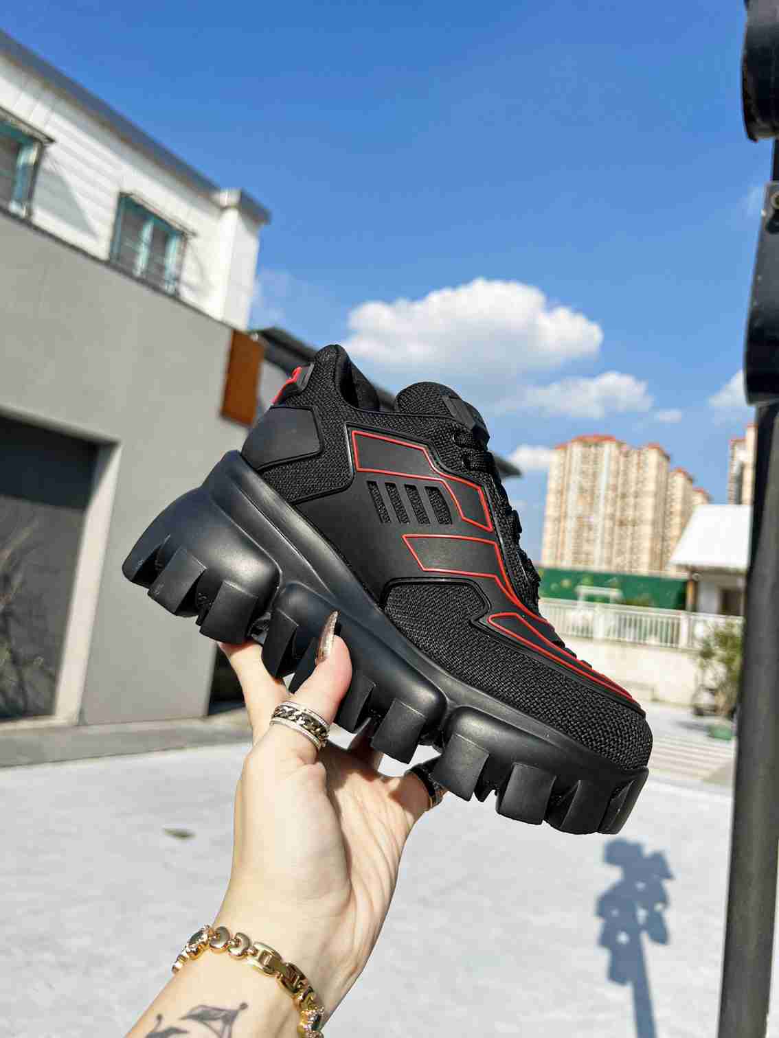 • Prada Cloudbust Thunder Sneakers With Black And Red 2Eg2933Lgnf0002
