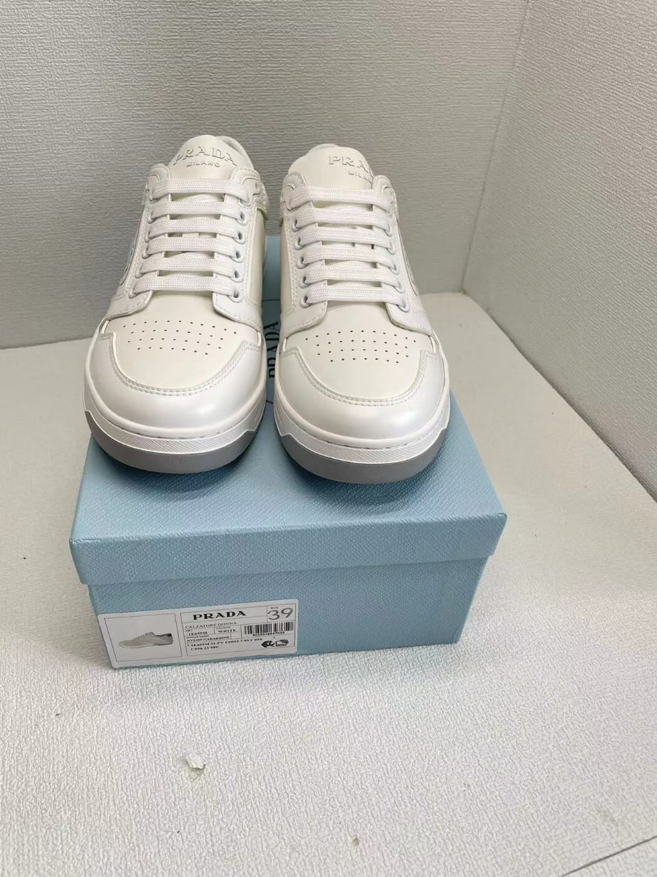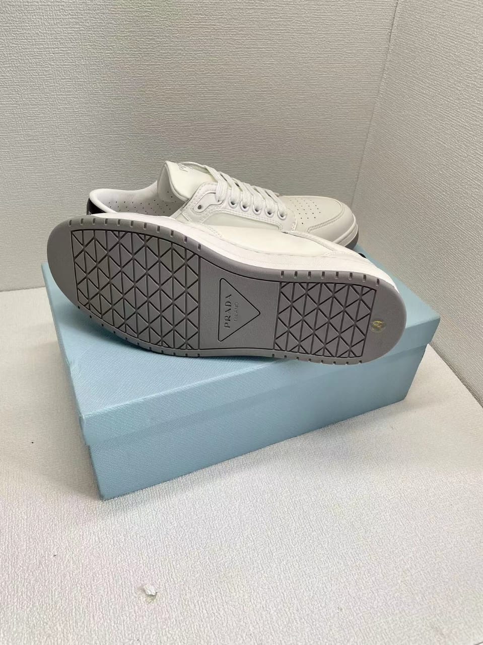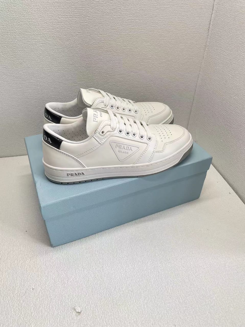 • Prada District Perforated Leather Sneakers White
