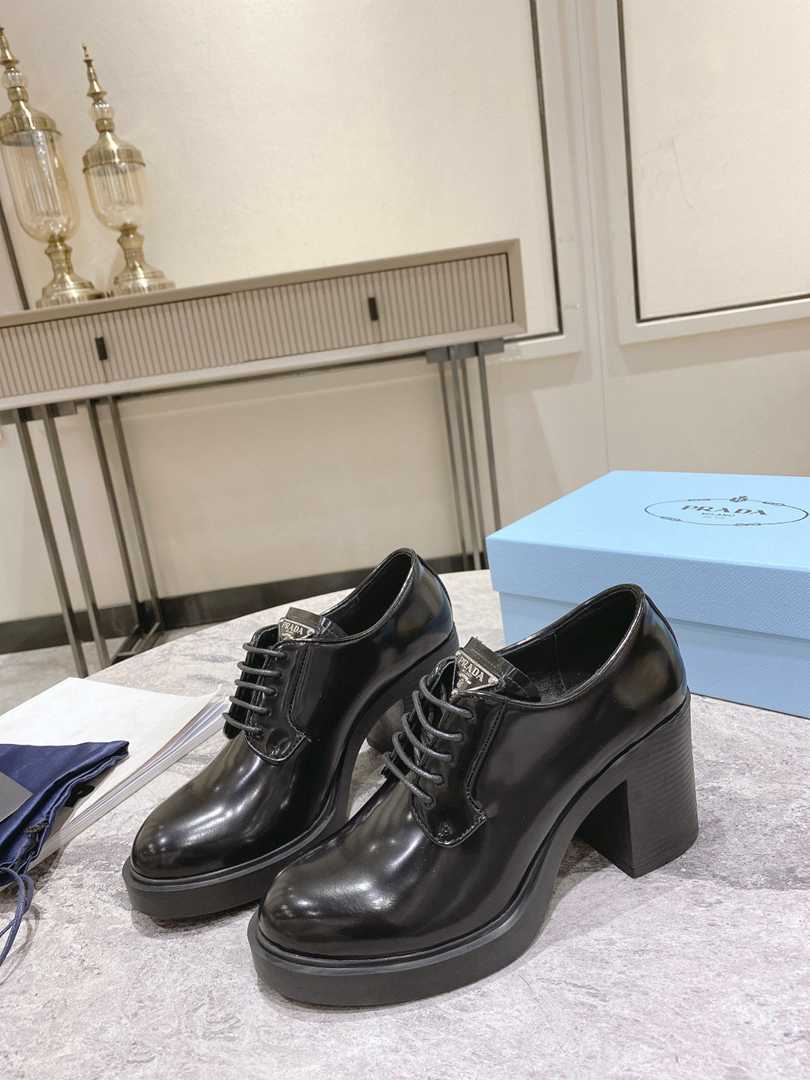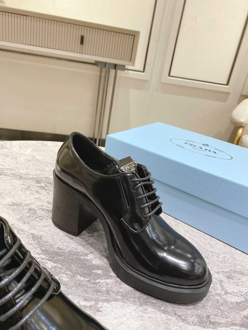 • Prada Heeled Brushed Leather Lace-Ups Black 1E976M055F0002F085