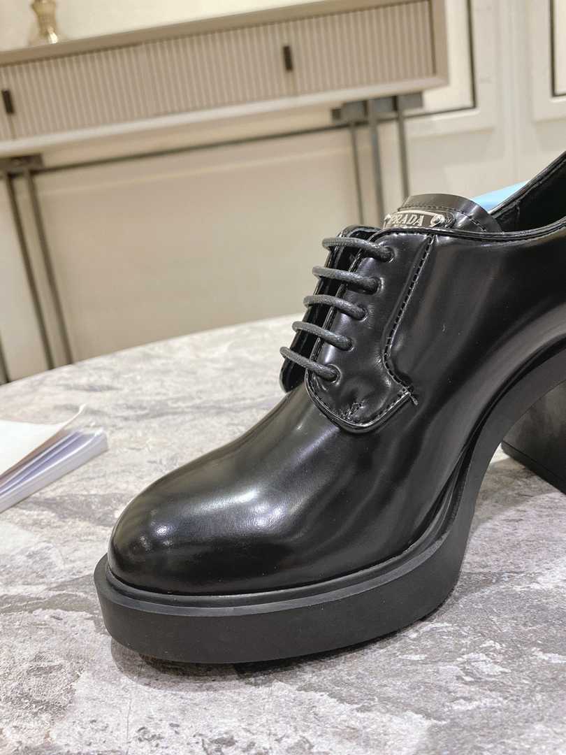 Prada Heeled Brushed Leather Lace-Ups Black 1E976M055F0002F085