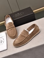 • Prada Men’S Flat Loafers Suede Leather Brown