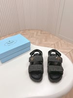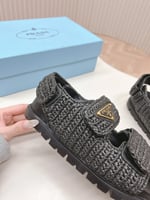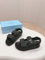 • Prada Monolith Crochet Raffia Effect Sandals In Black
