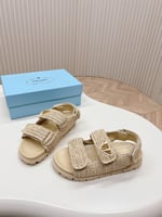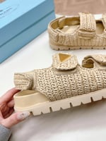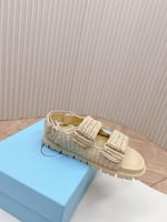 • Prada Monolith Crochet Raffia Effect Sandals In Neutrals