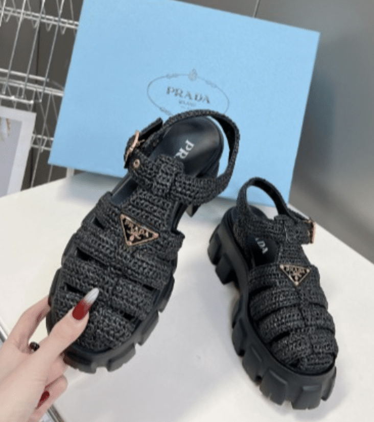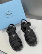 Prada Monolith Crochet Sandals Black