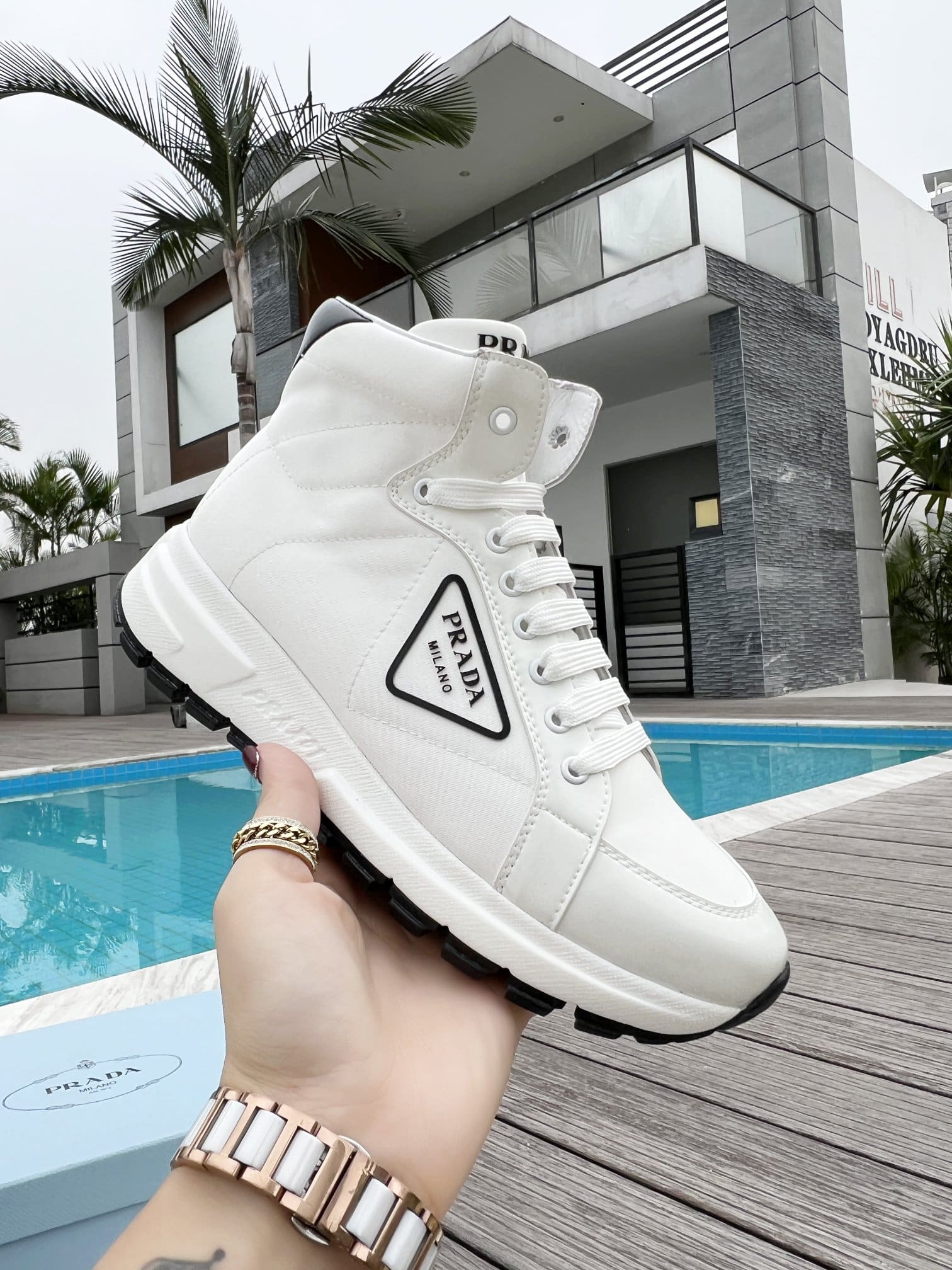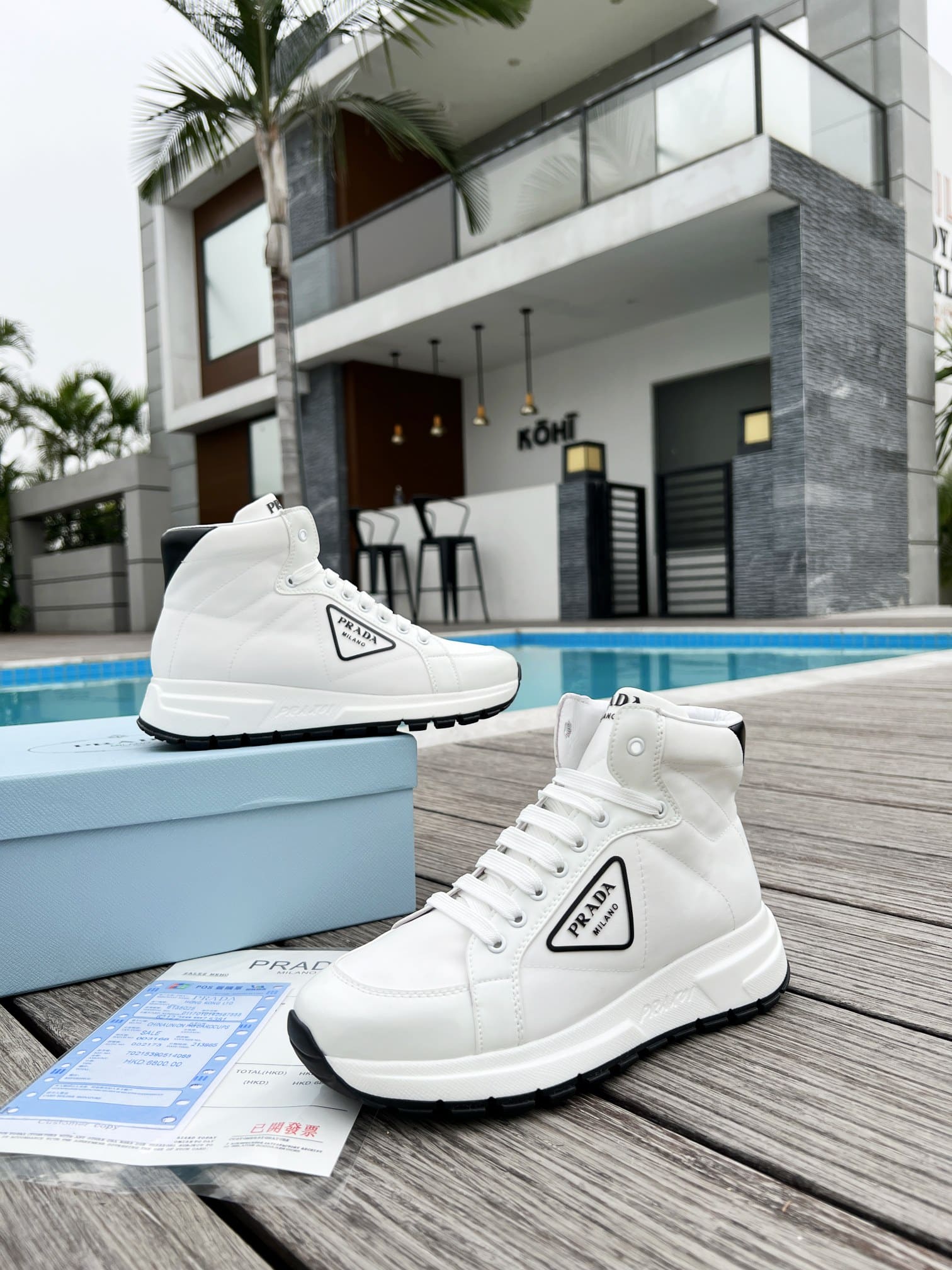 • Prada Prax 01 Re Nylon And Brushed Leather Sneakers White