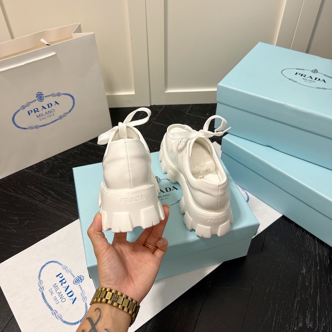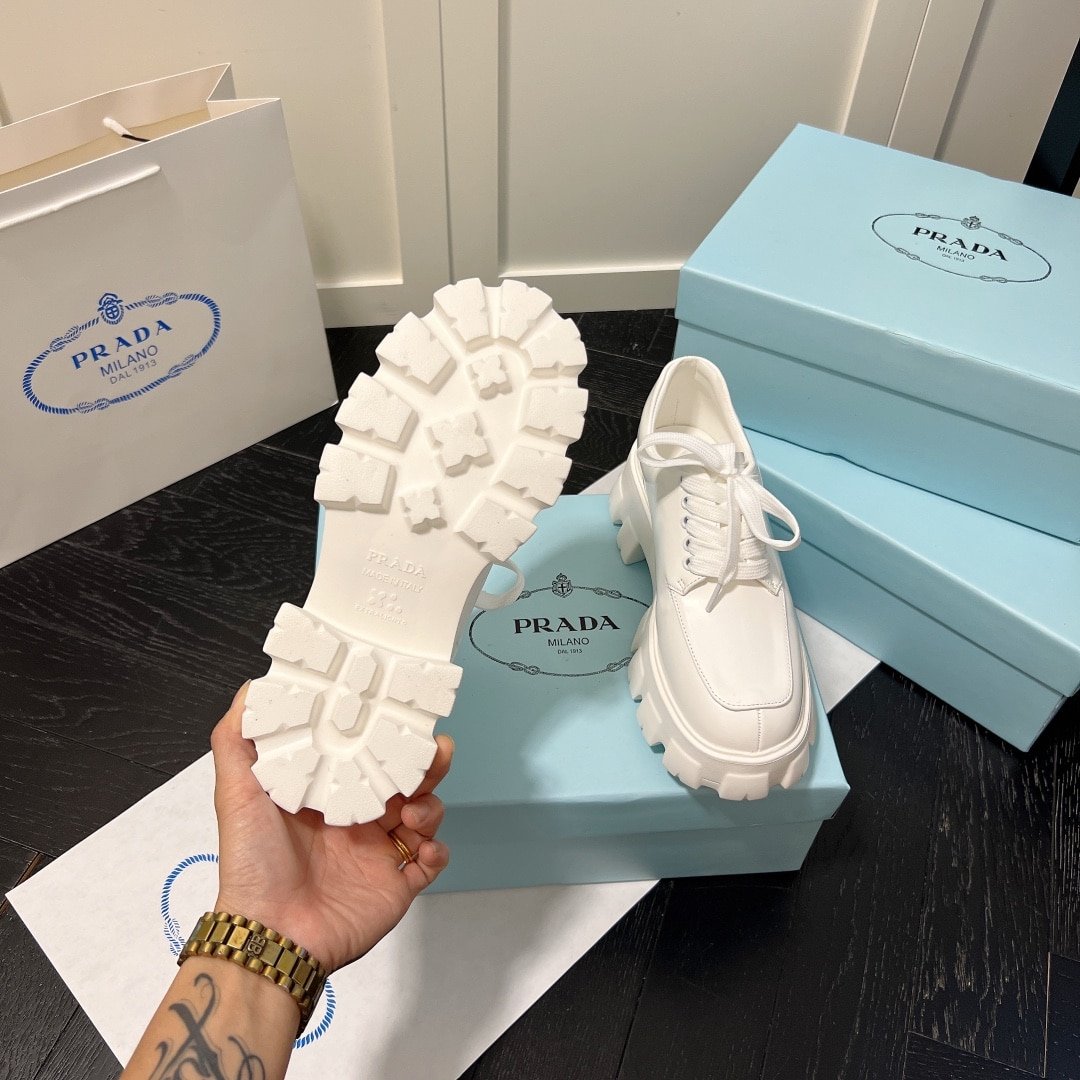 Prada Smooth Leather Oxford Loafers White