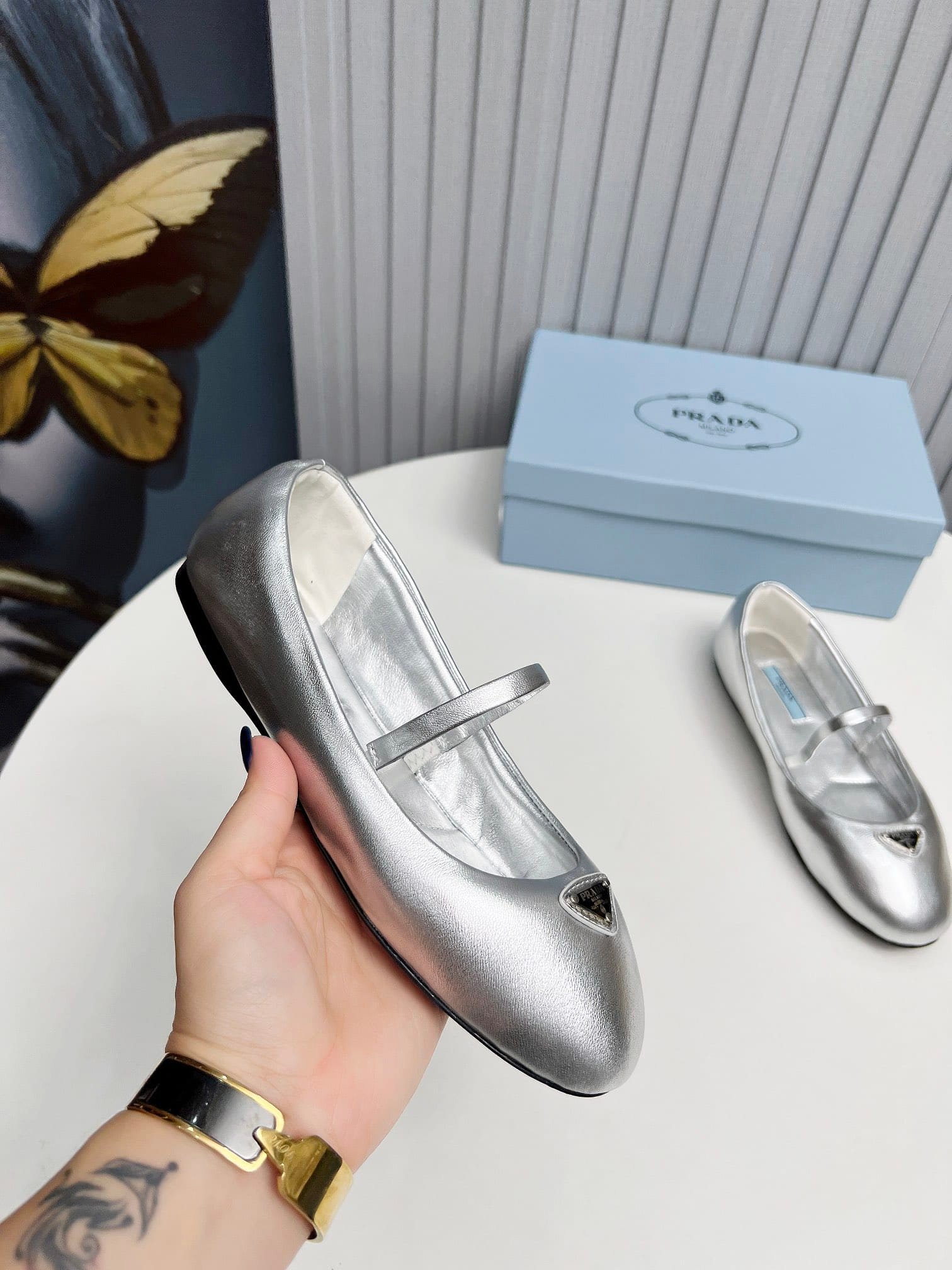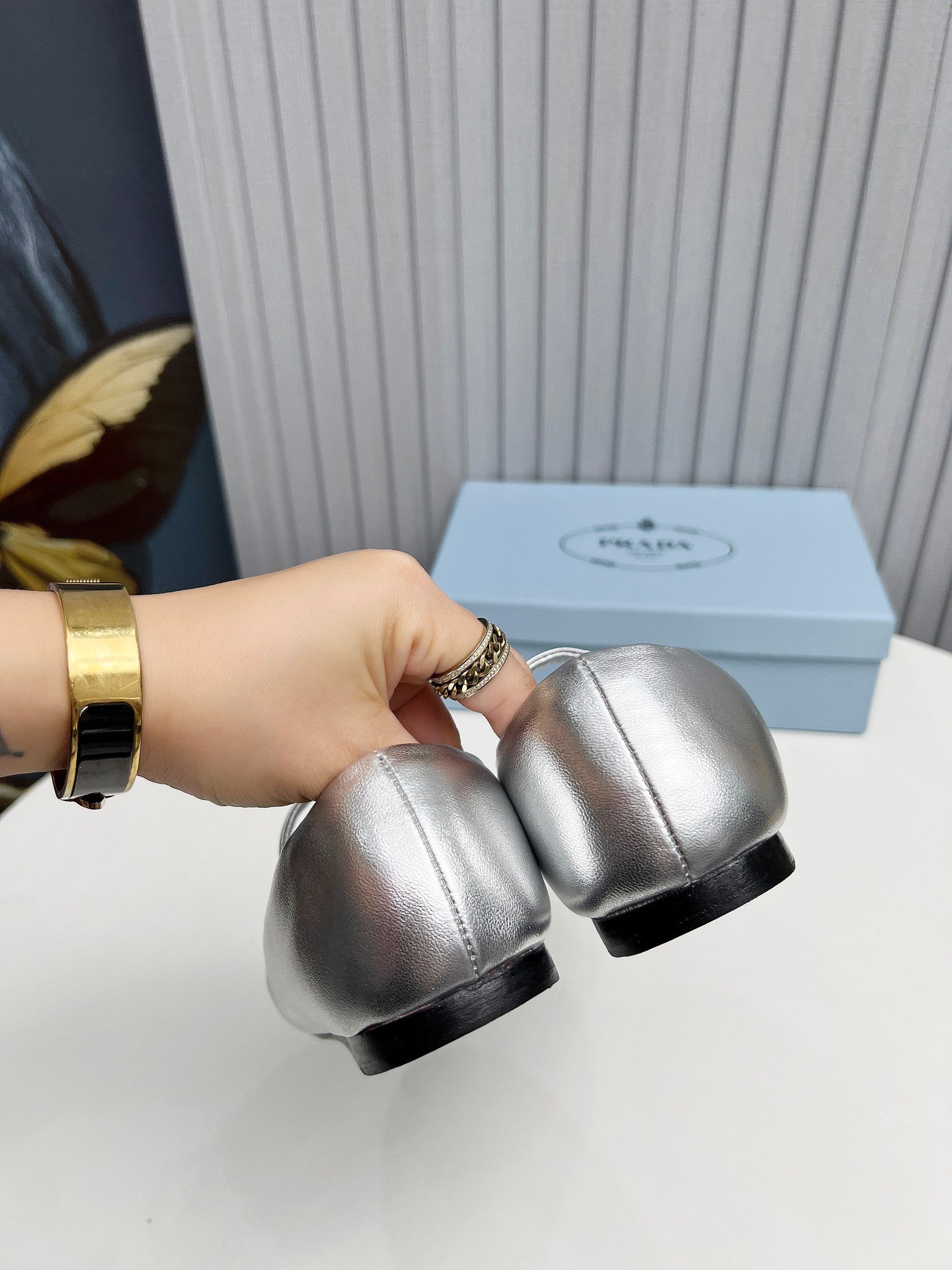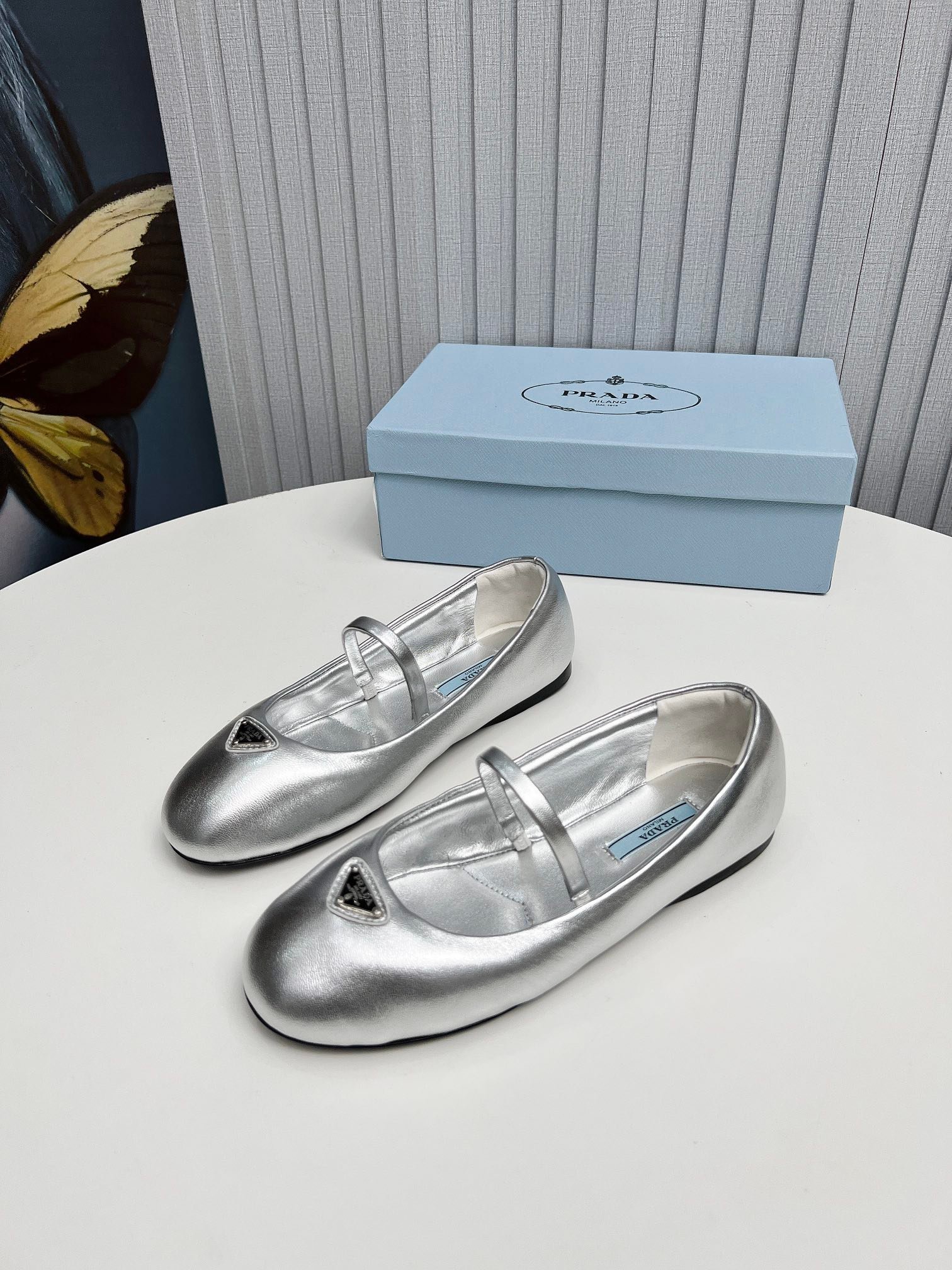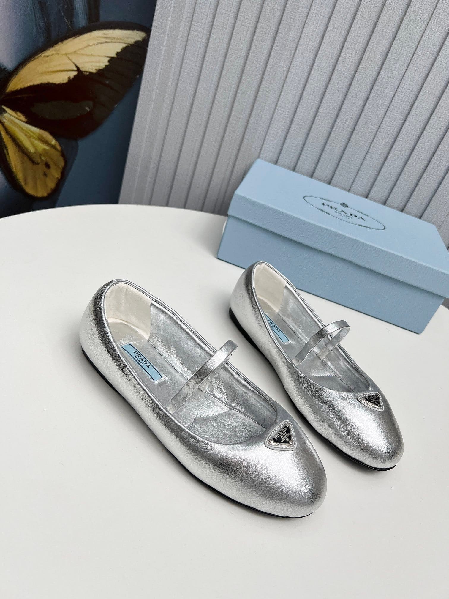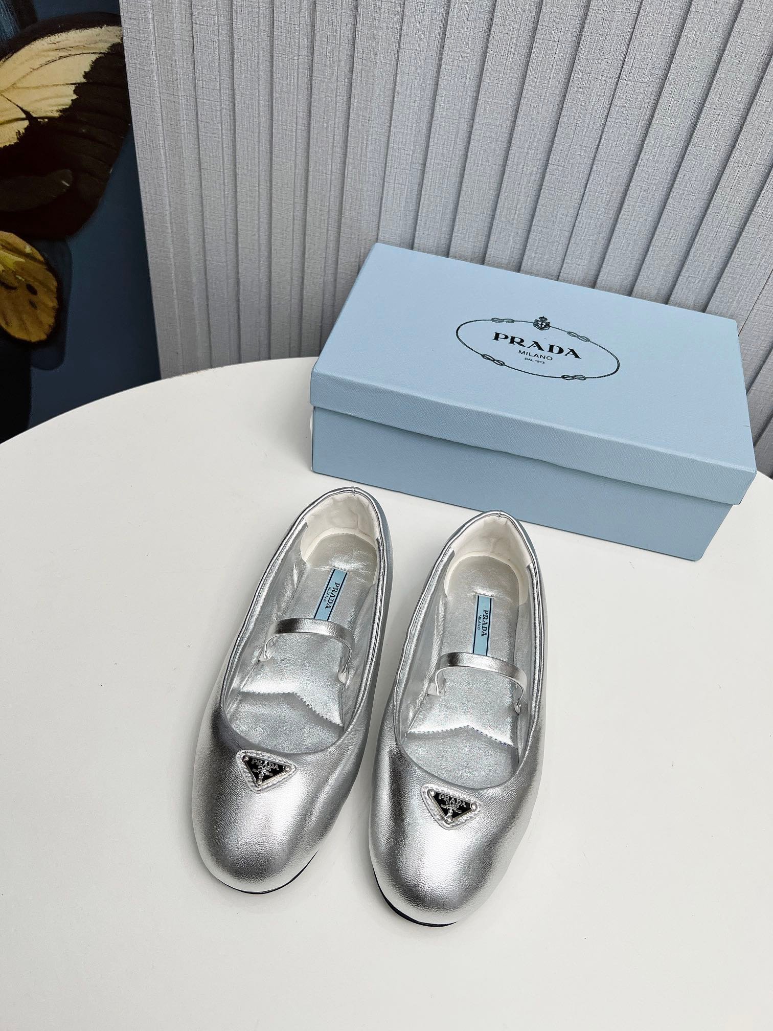 • Prada Soft Padded Nappa Leather Ballerinas Silver