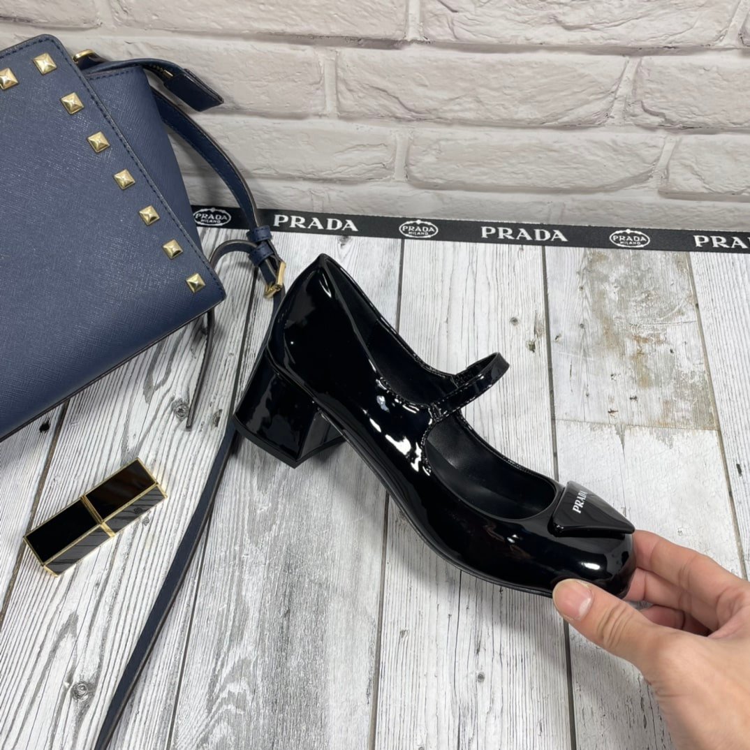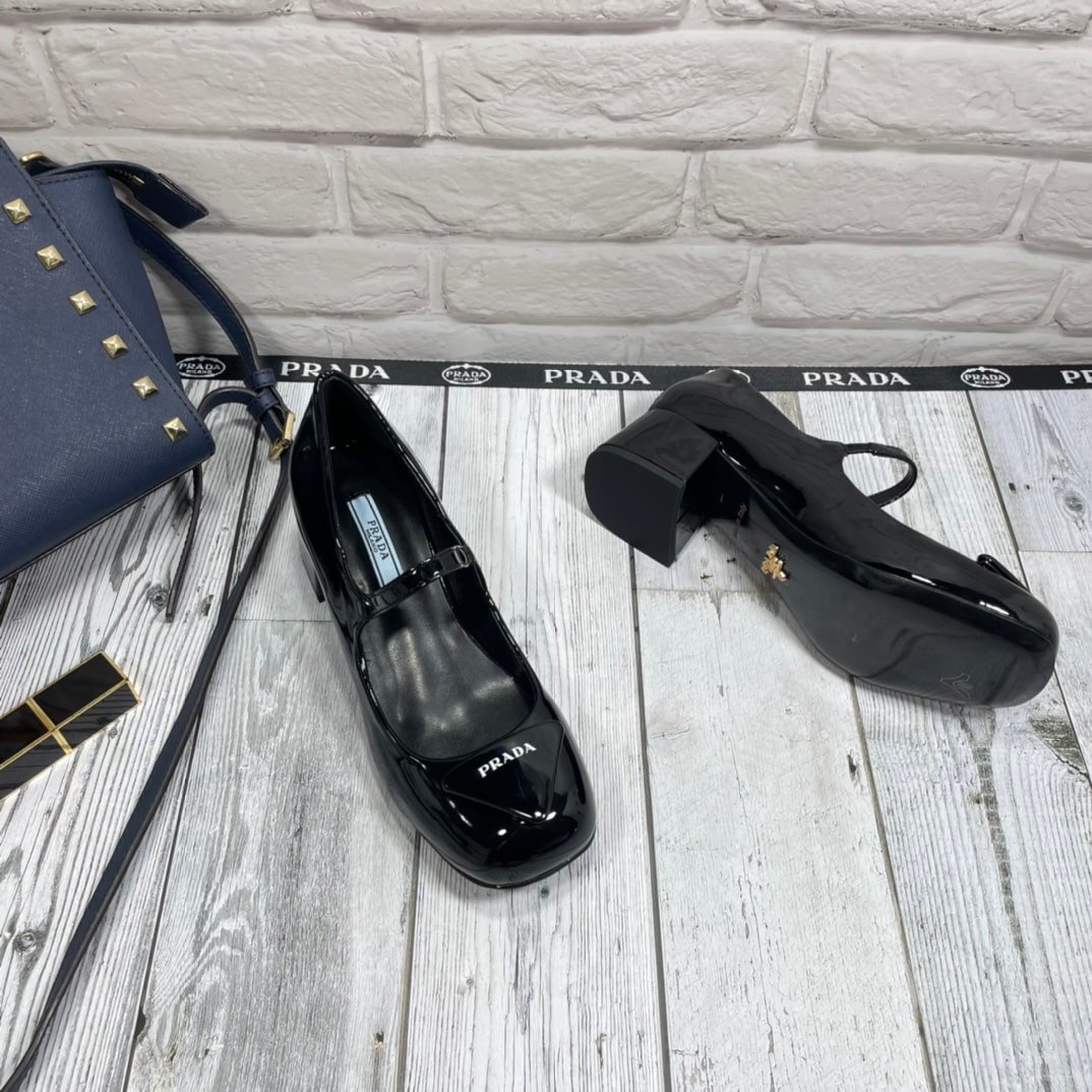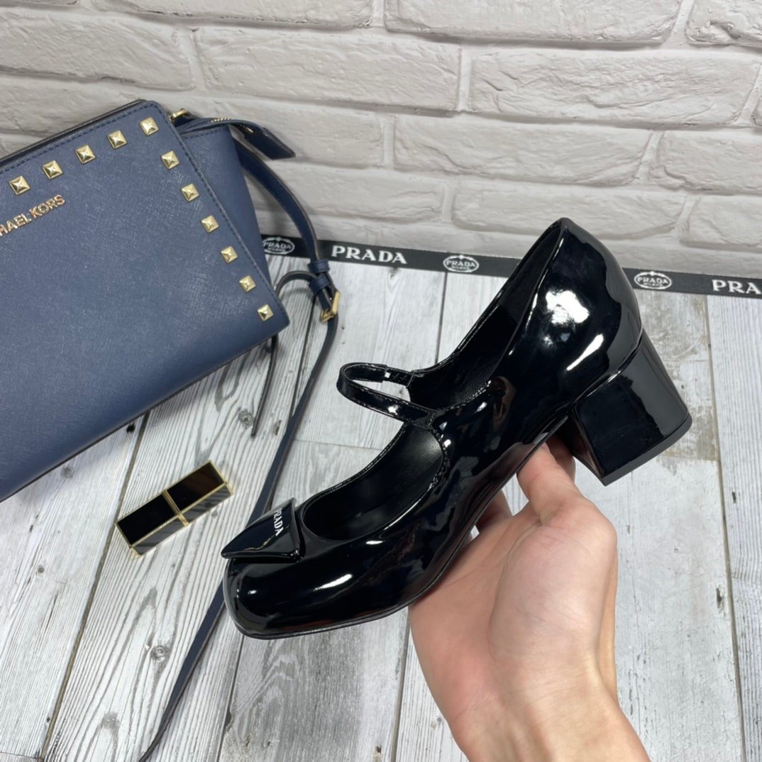 • Prada Women’S Logo Patch Heeled Pumps Black 1I768Mf045069