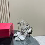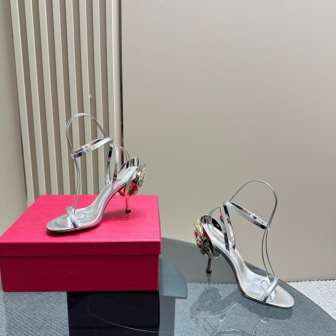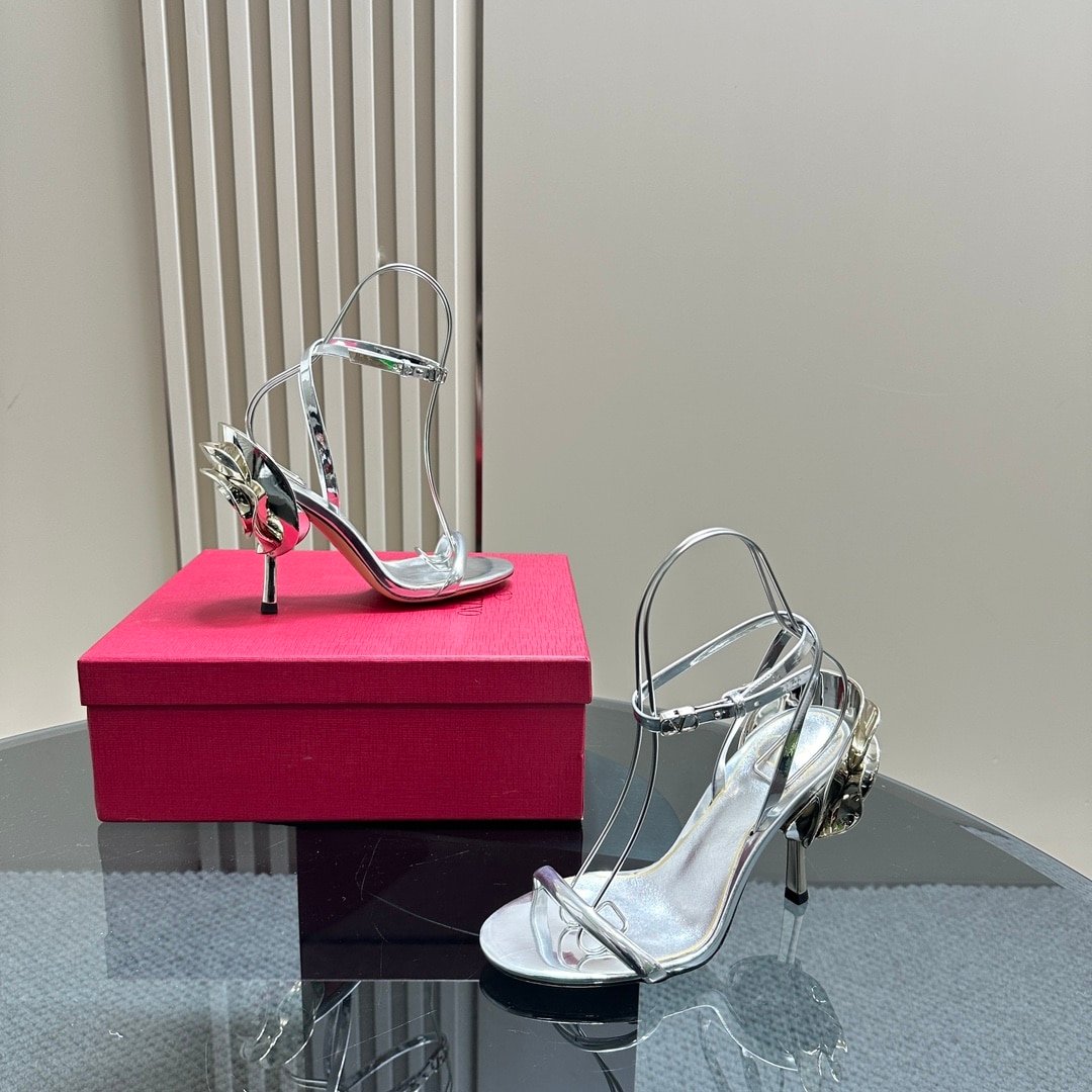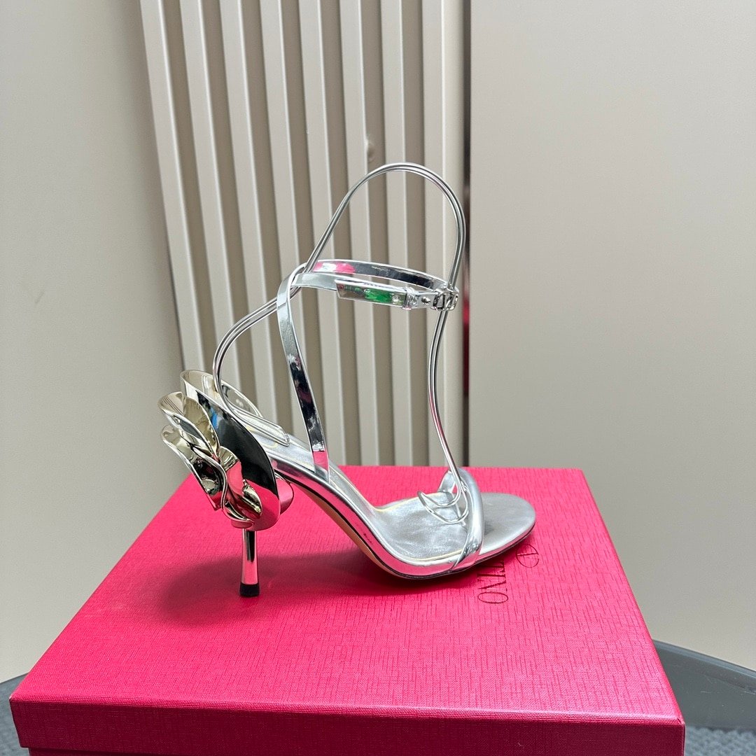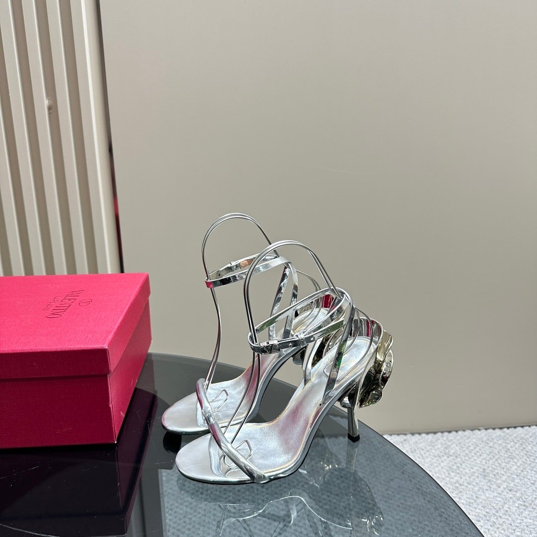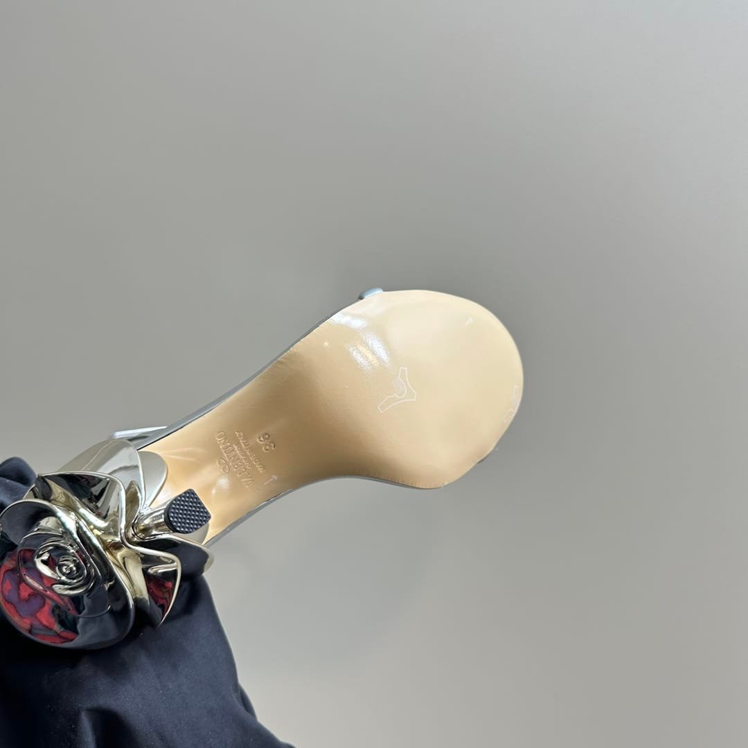 • Valentino Garavani Archive Roserouche Metallic Leather High Heel Silver