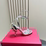 Valentino Garavani Archive Roserouche Metallic Leather High Heel Silver