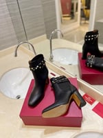 • Valentino Garavani Rockstud Grainy Calfskin Ankle Boot Black 3W2S0P62Vce 0No