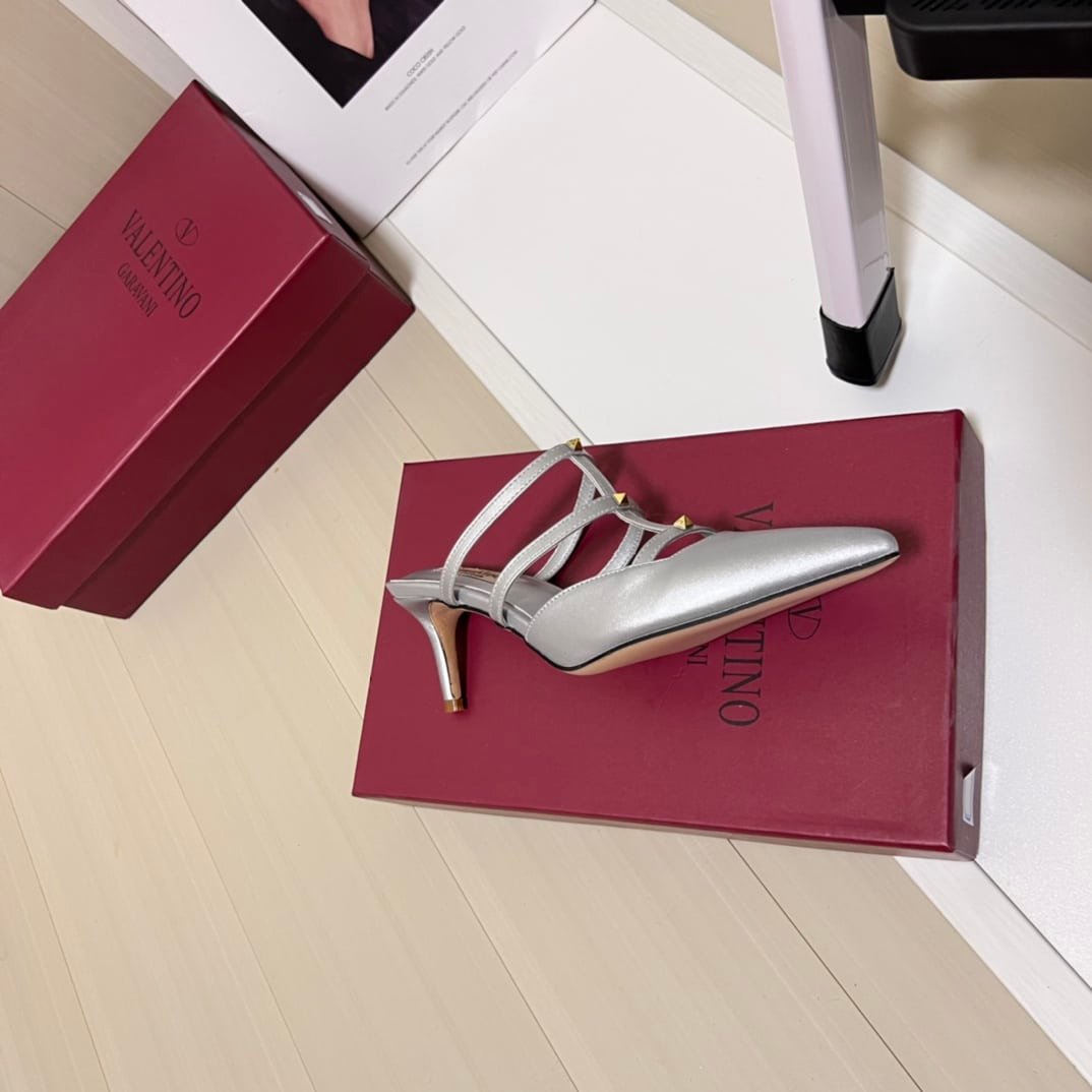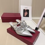 Valentino Garavani Rockstud Wispy Mule In Calfskin Silver