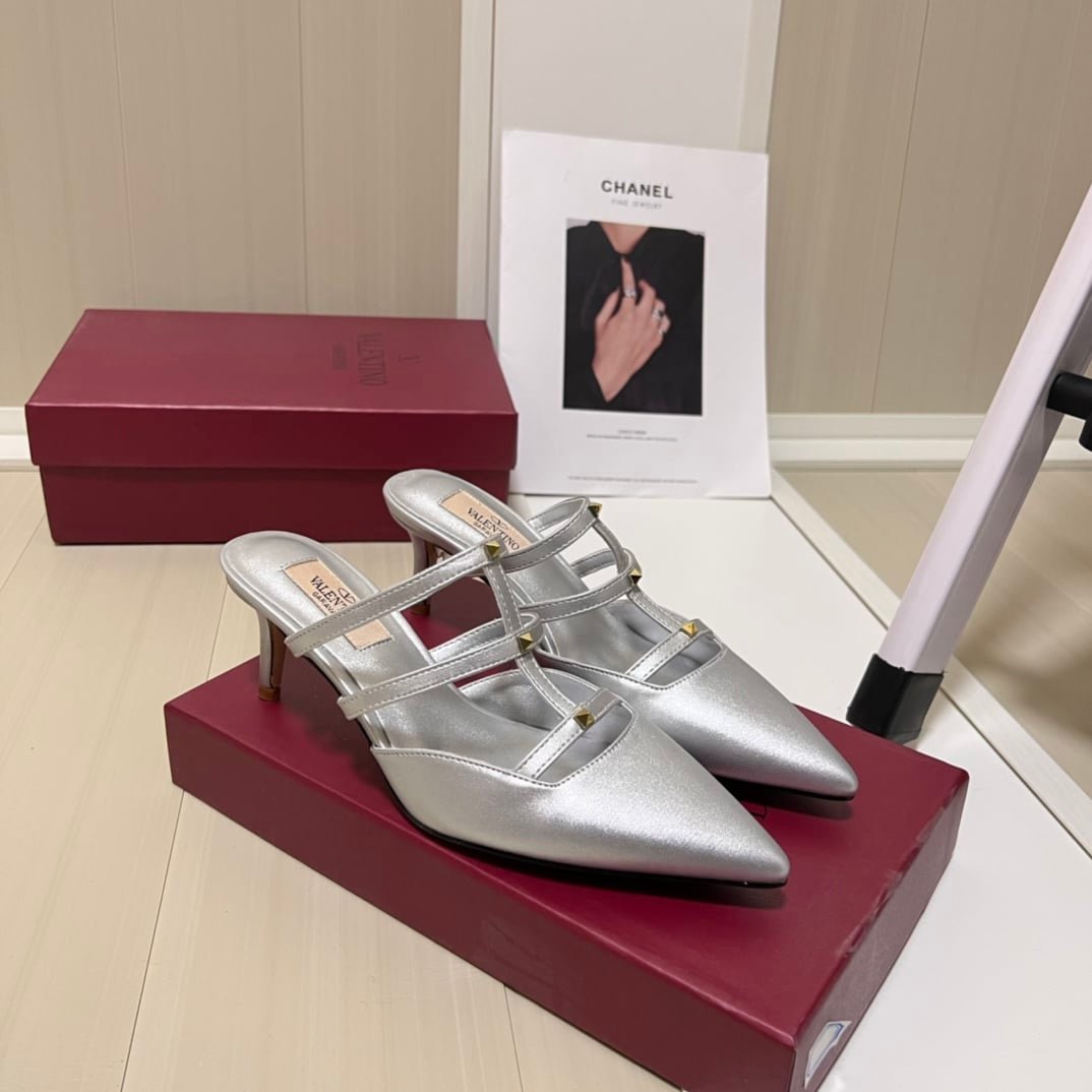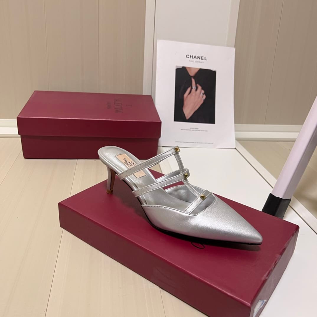 • Valentino Garavani Rockstud Wispy Mule In Calfskin Silver