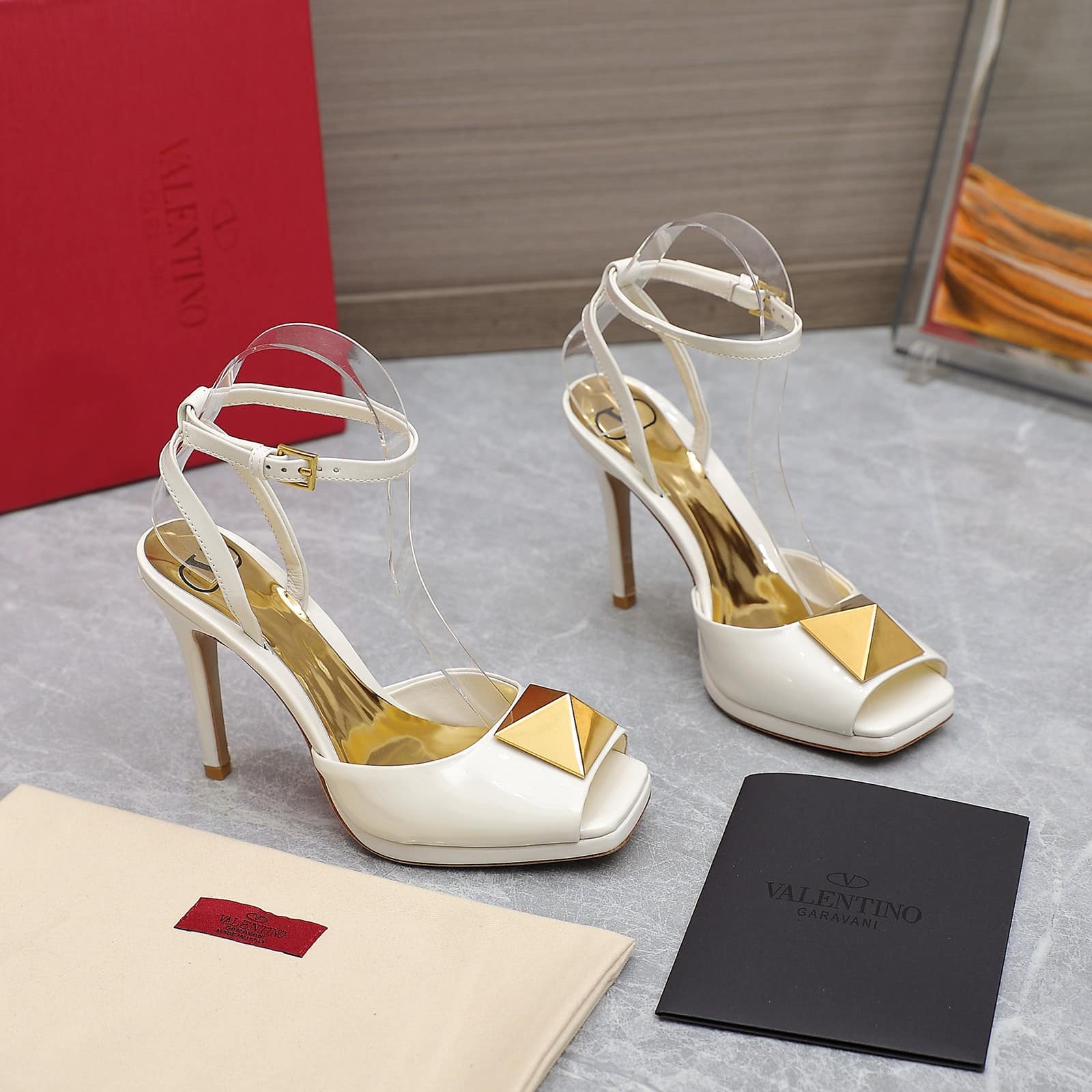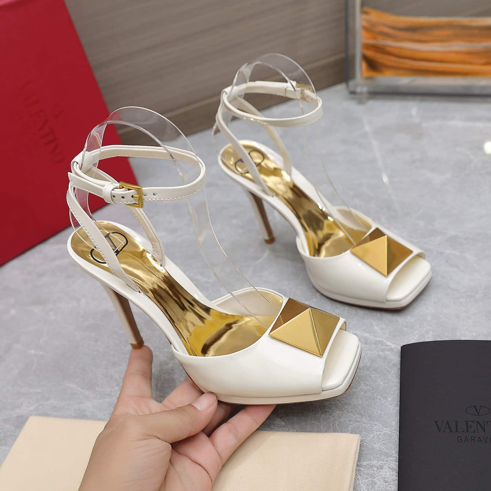 • Valentino Garavani Roman Gold Stud Block Pump White