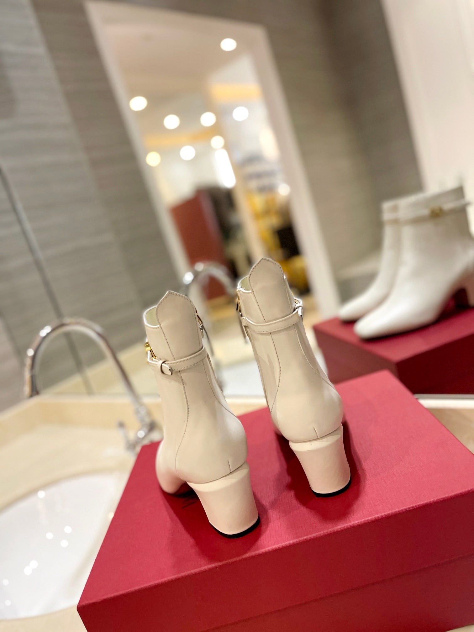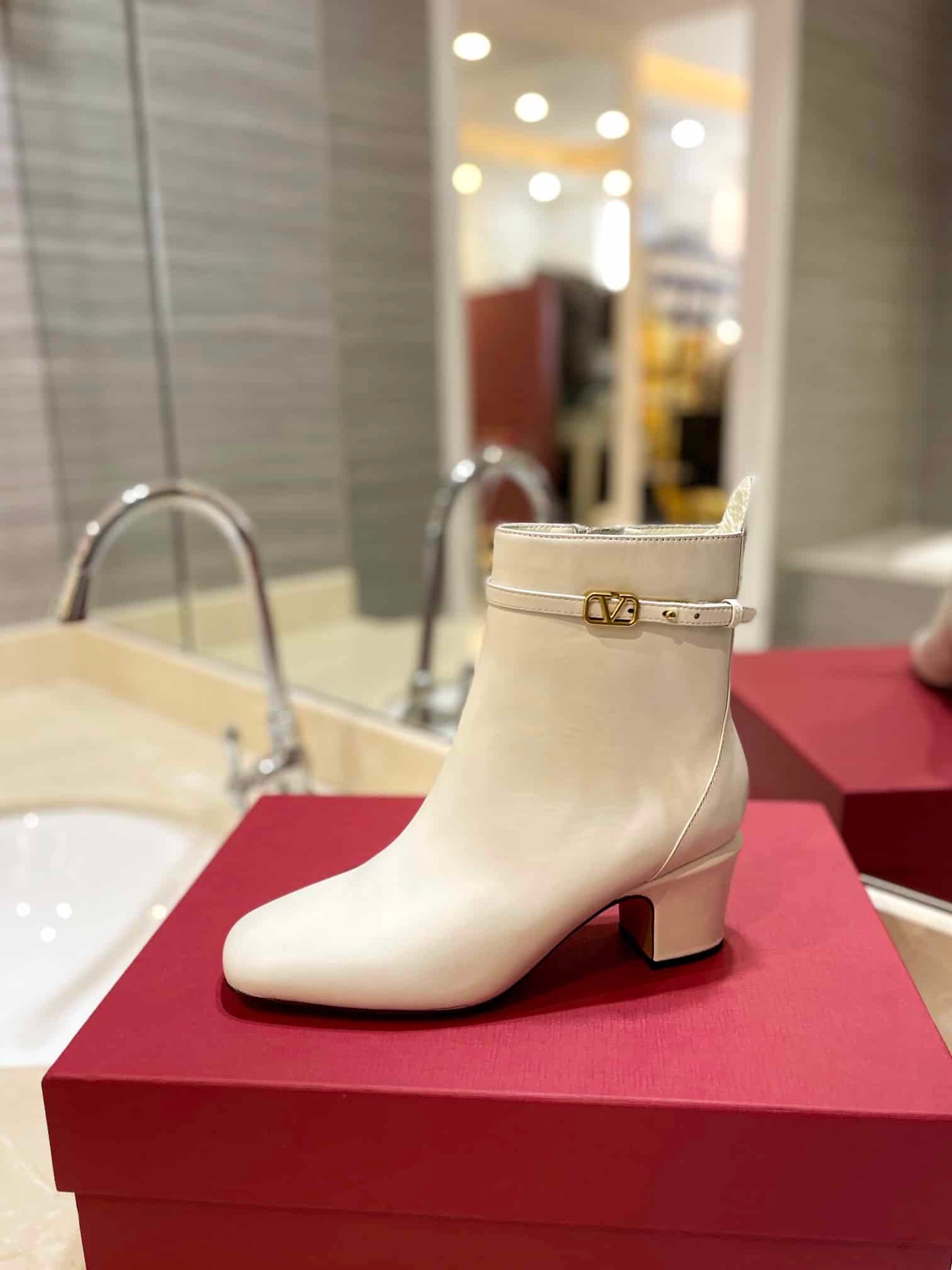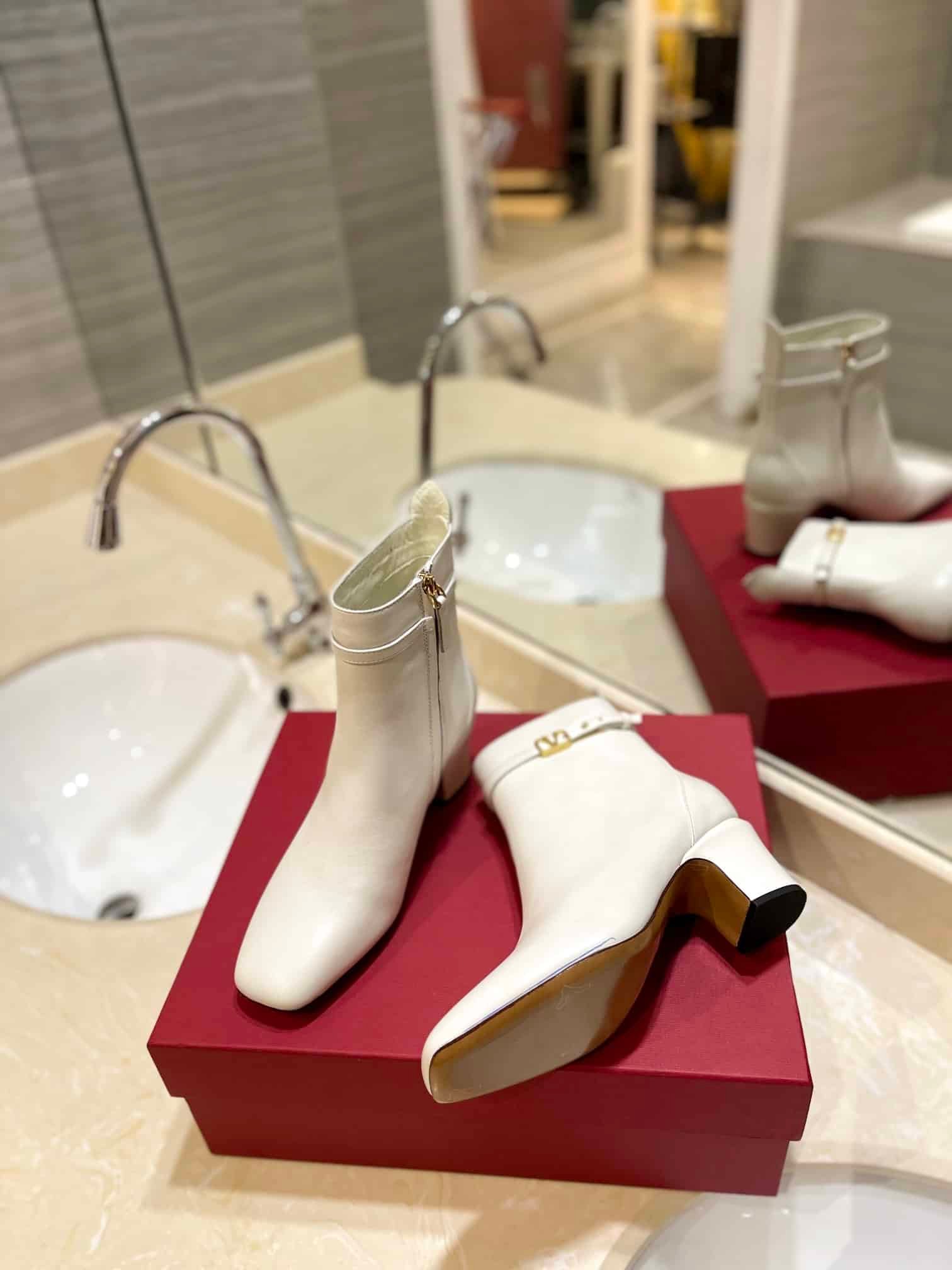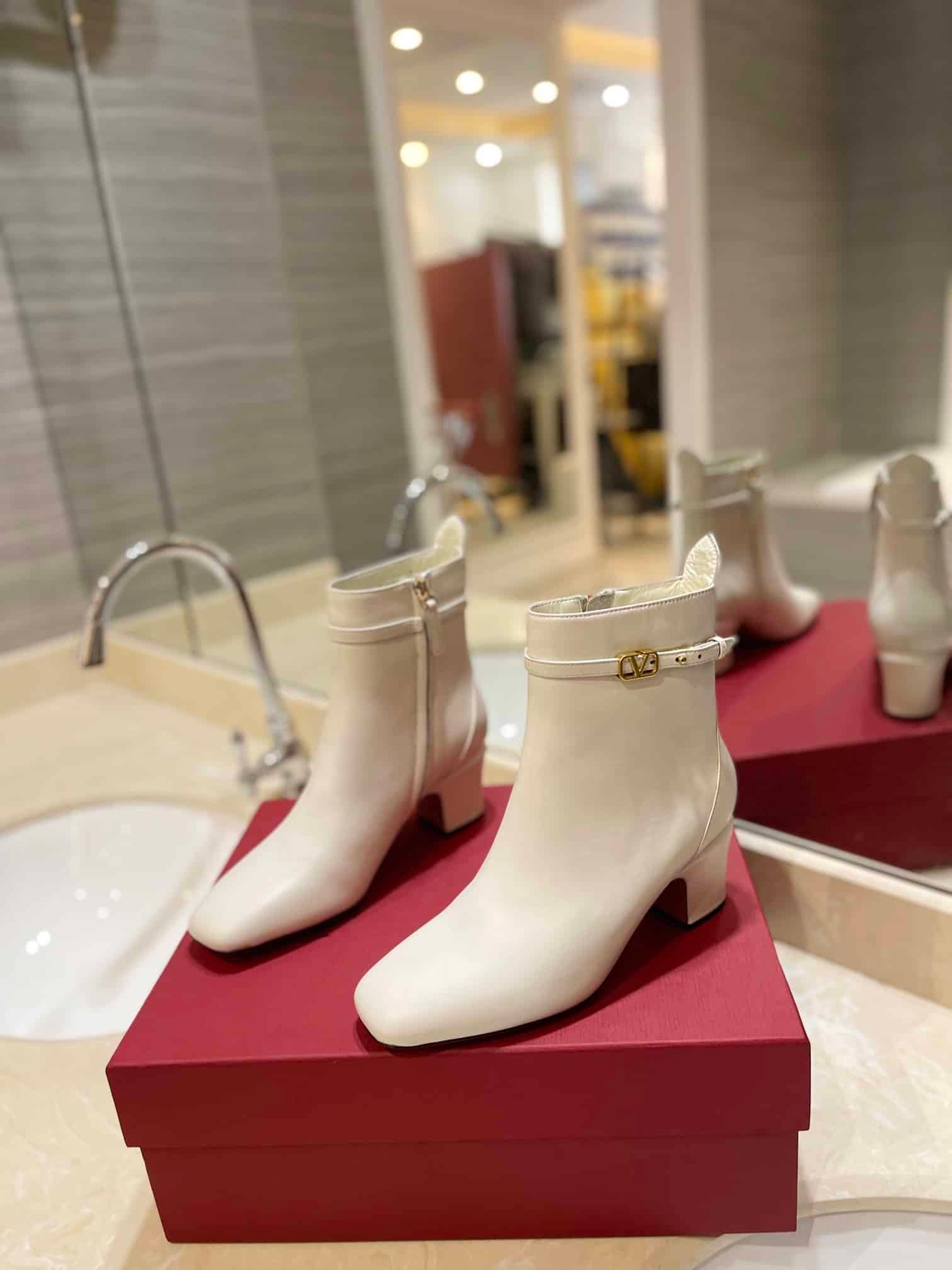 • Valentino Garavani Tan Go Ankle Boot In Calfskin Leather White