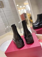 • Valentino Garavani Uniqueform V Logo Leather Platform Boots Black