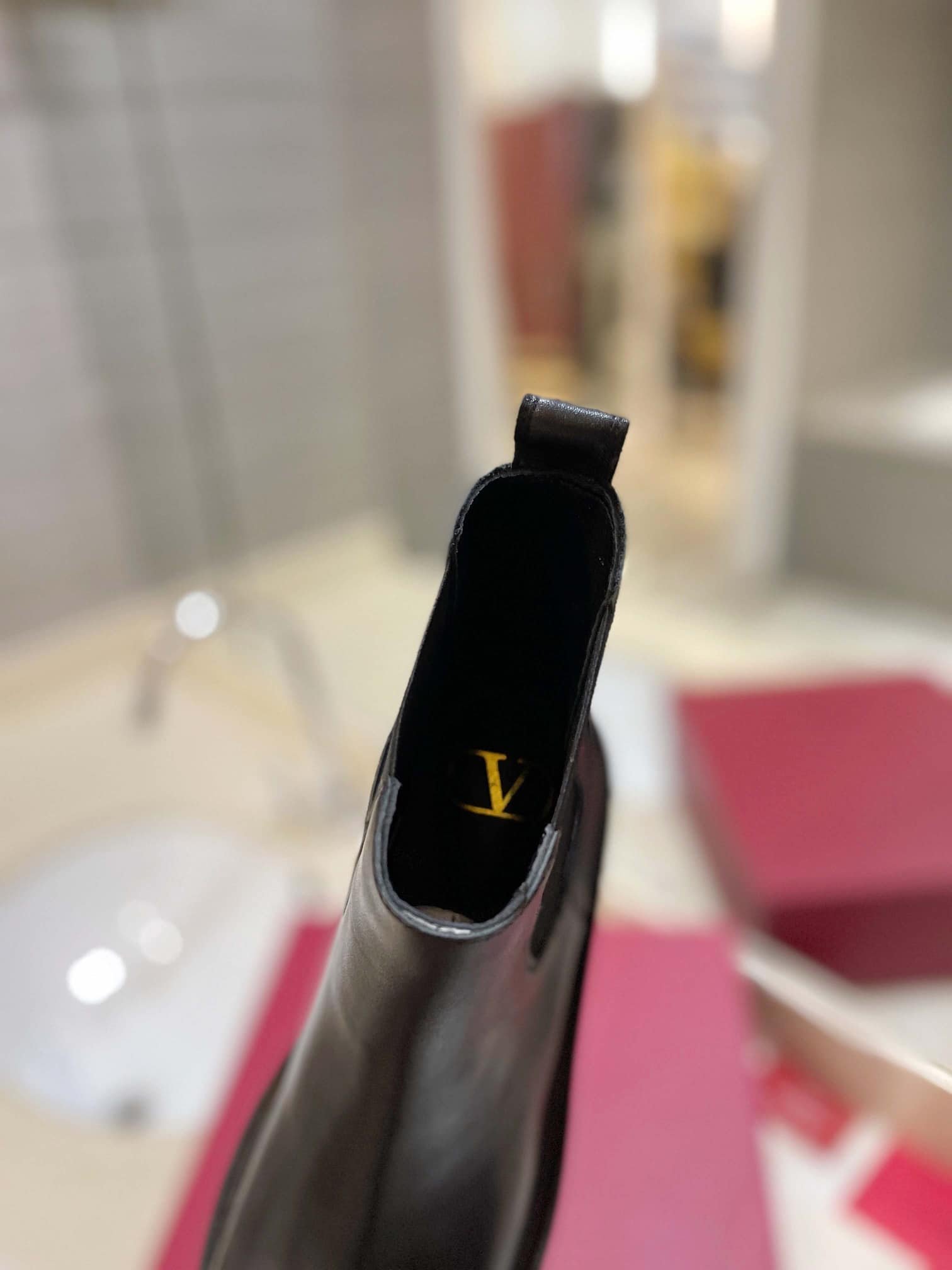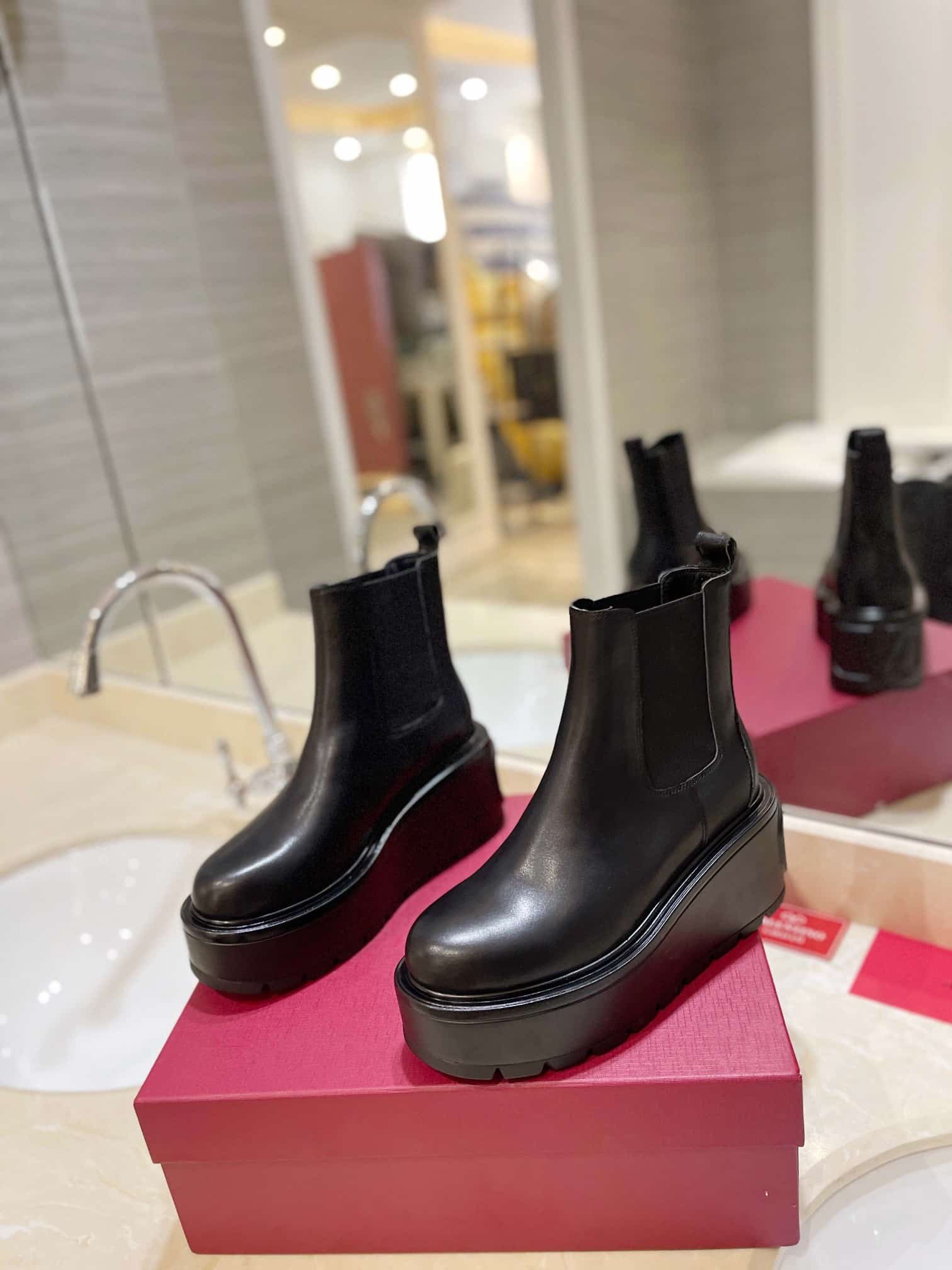 Valentino Garavani Uniqueform V Logo Leather Platform Boots Black