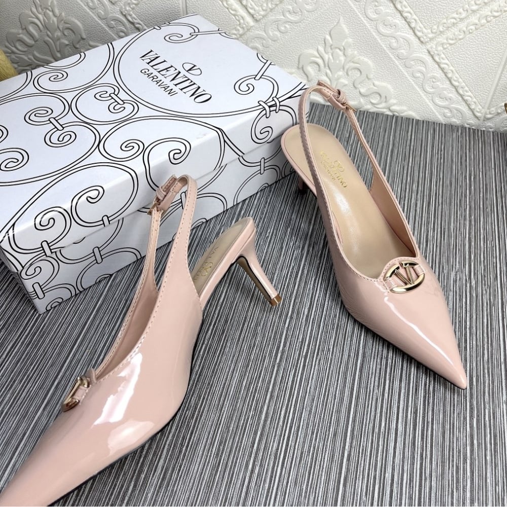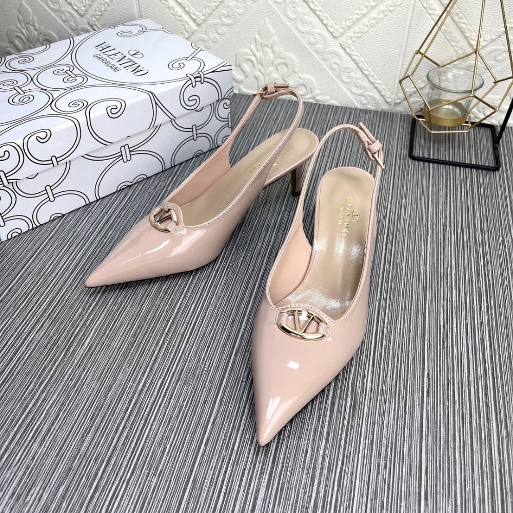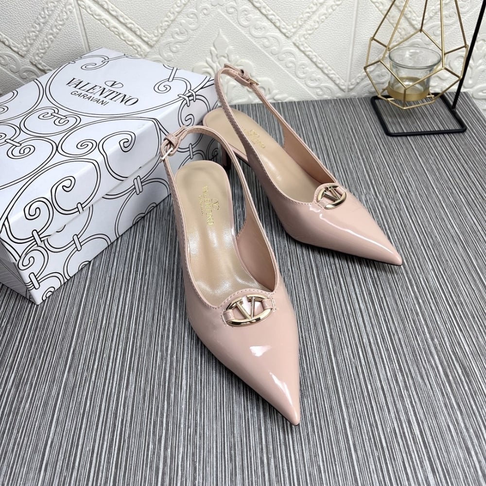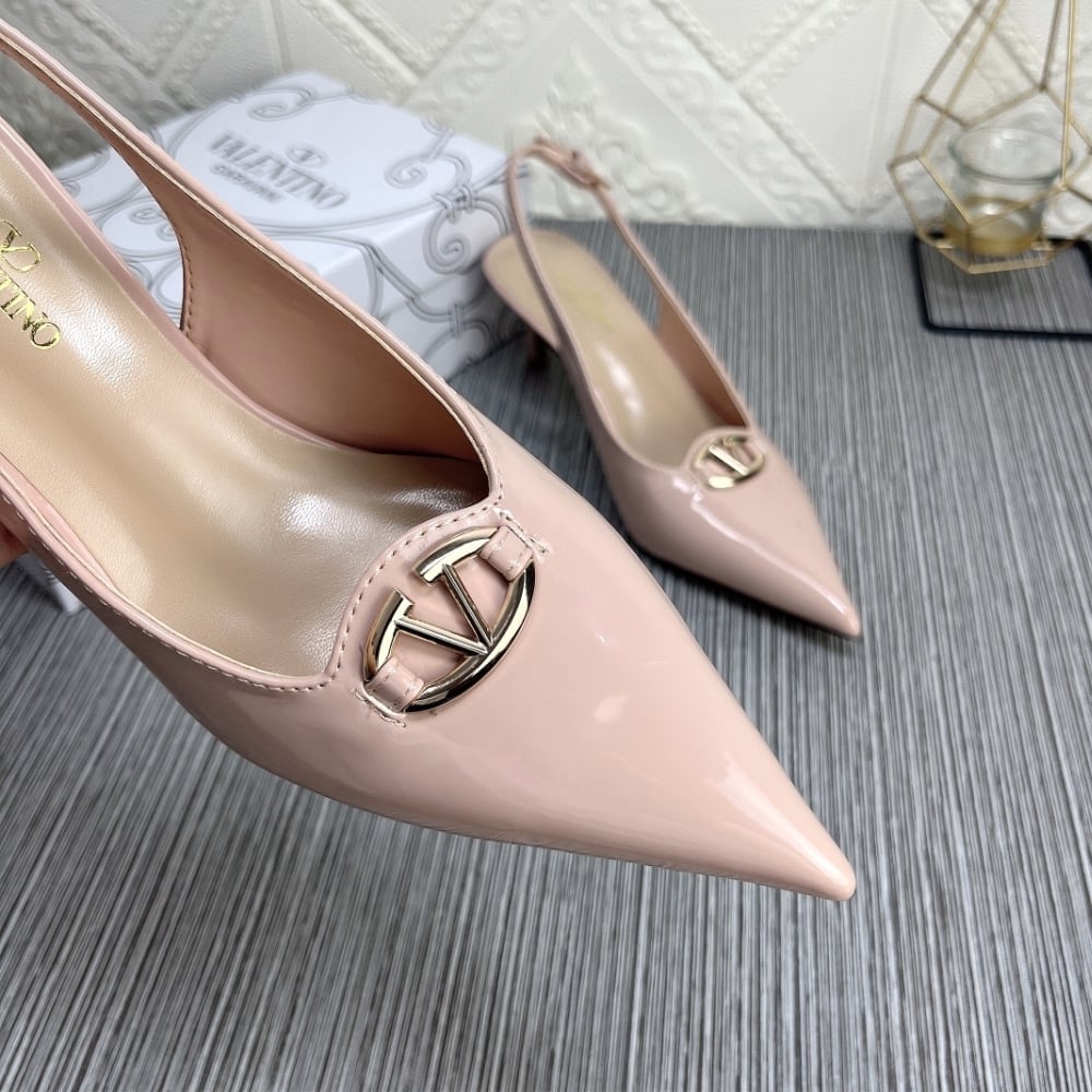 • Valentino Vlogo The Bold Edition Slingback Pumps In Patent Leather 60Mm In Beige Rose