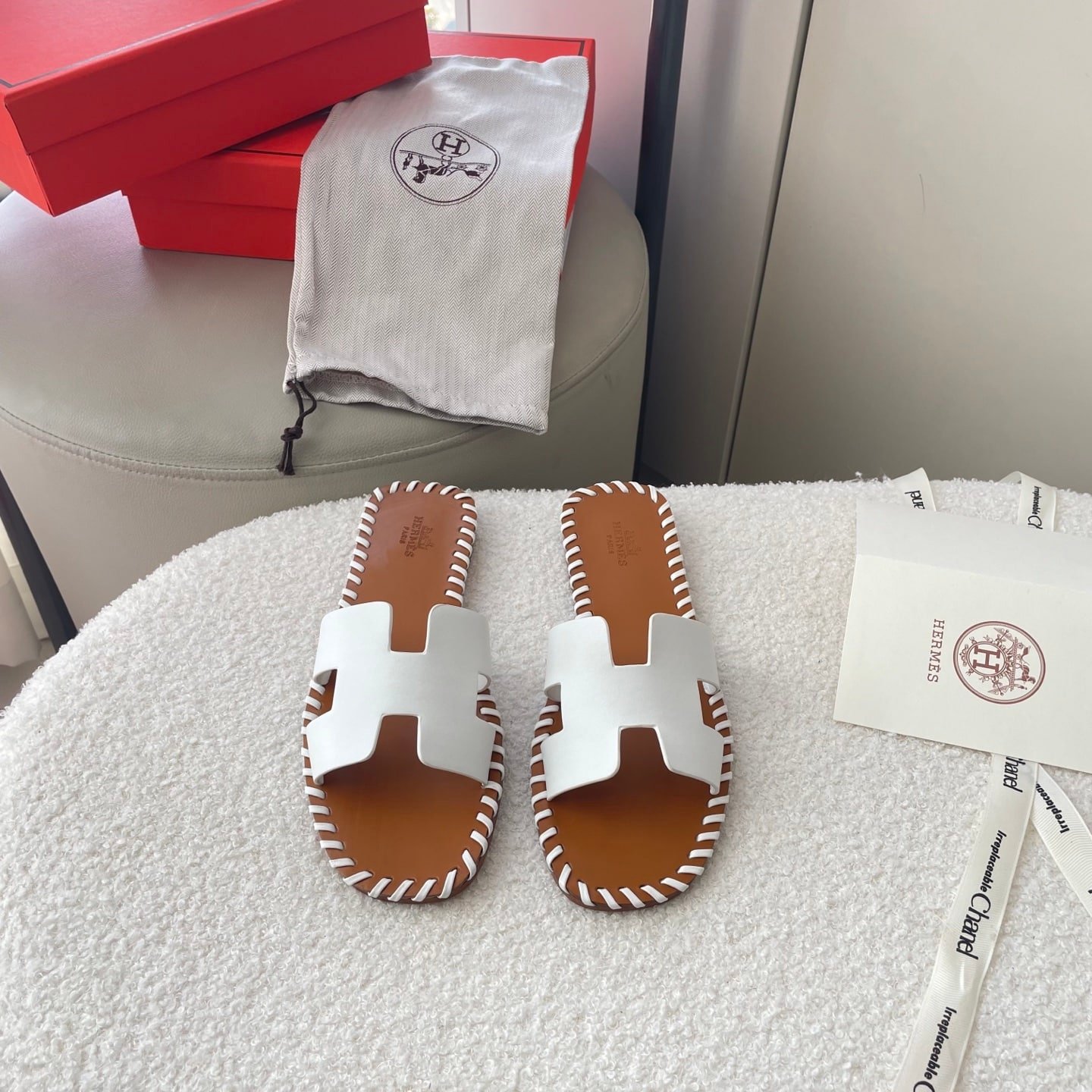 Hermes Chypre Sandal H Logo Silver Hardware White