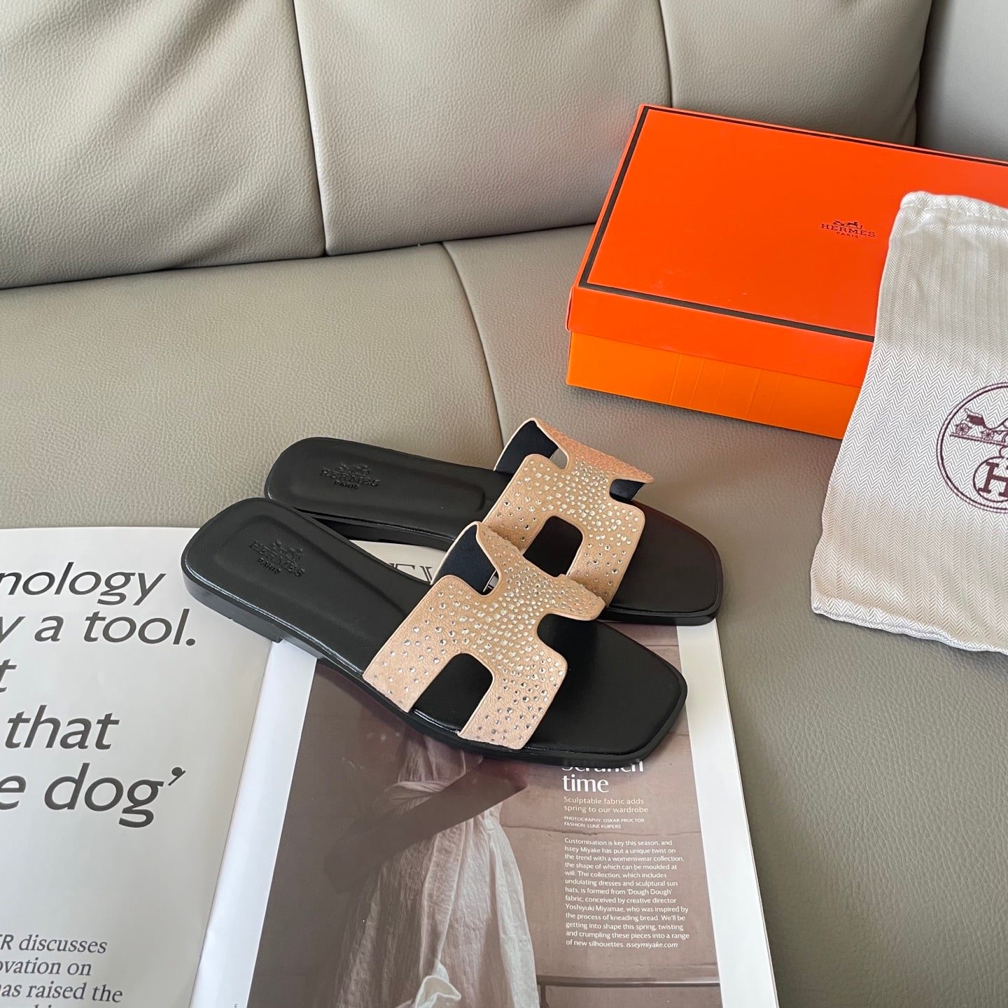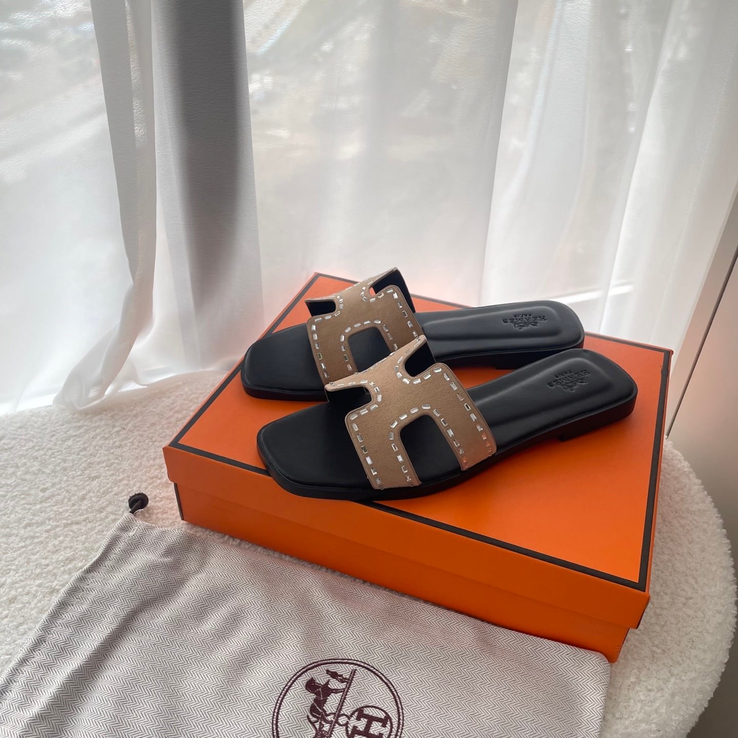 Hermes Oran Sandal Crystle Beige