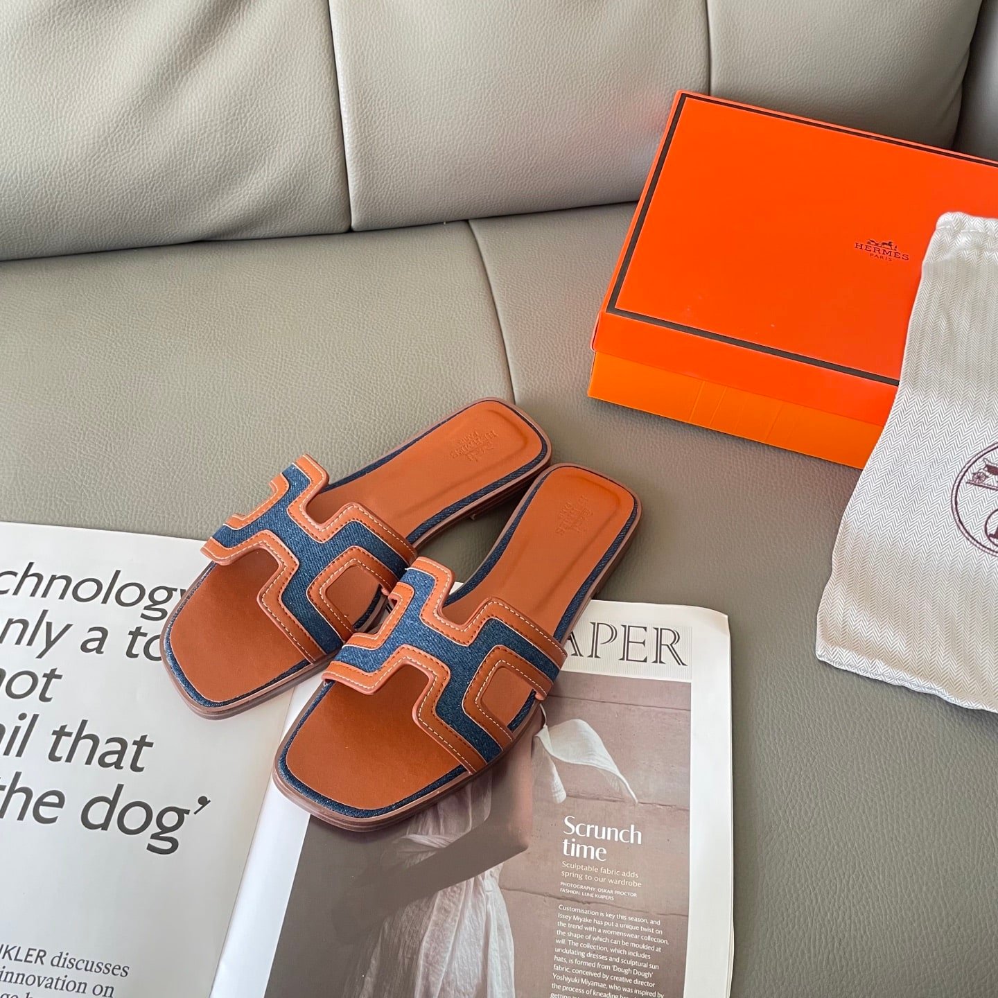 Hermes Izmir Sandal Bleu Bleuet Orange H221824Z