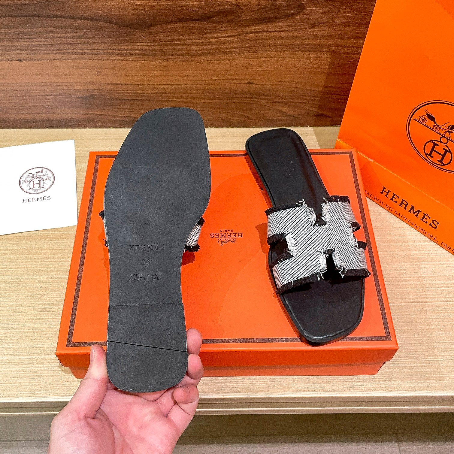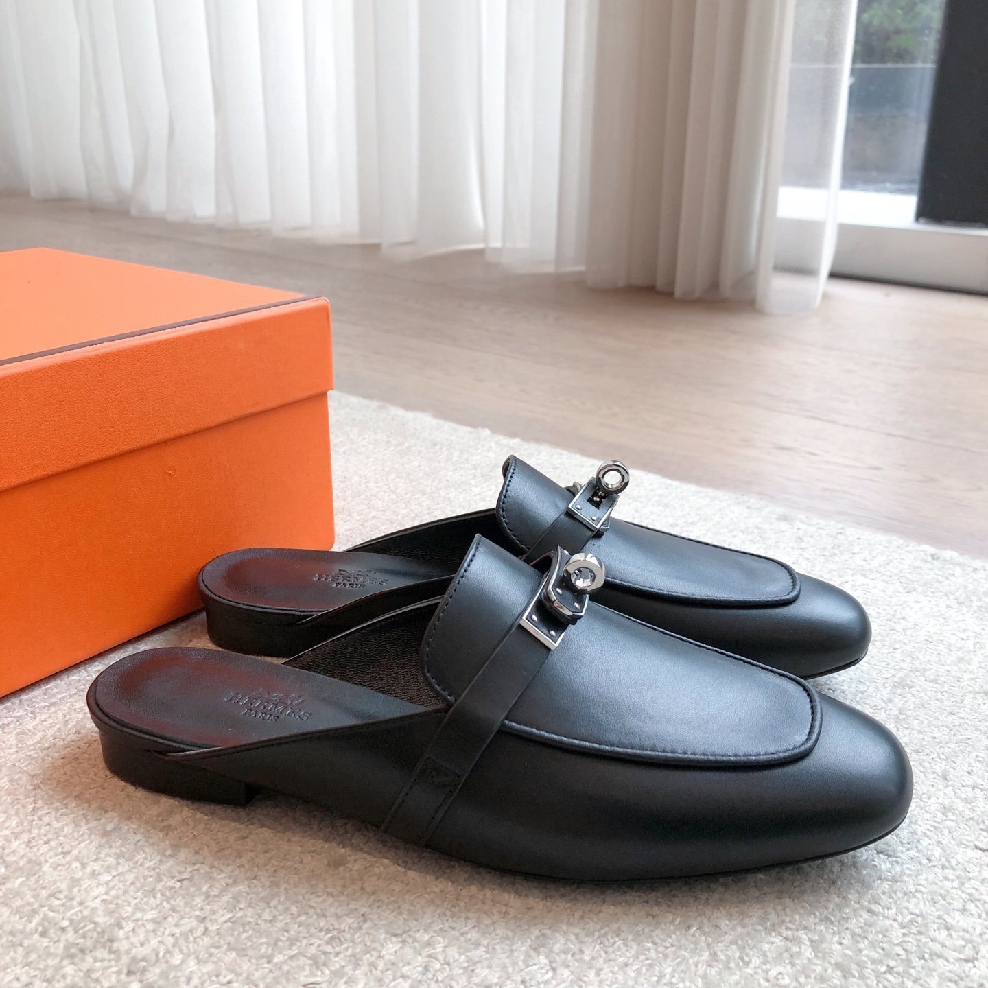 Hermes Slippers Flat Oran Black H021056Z
