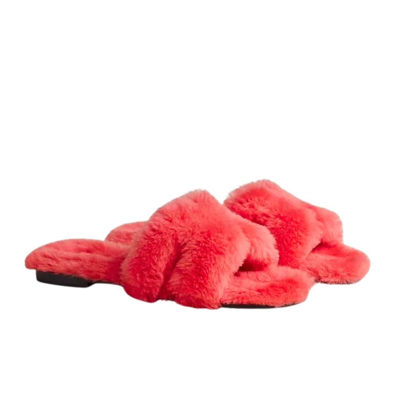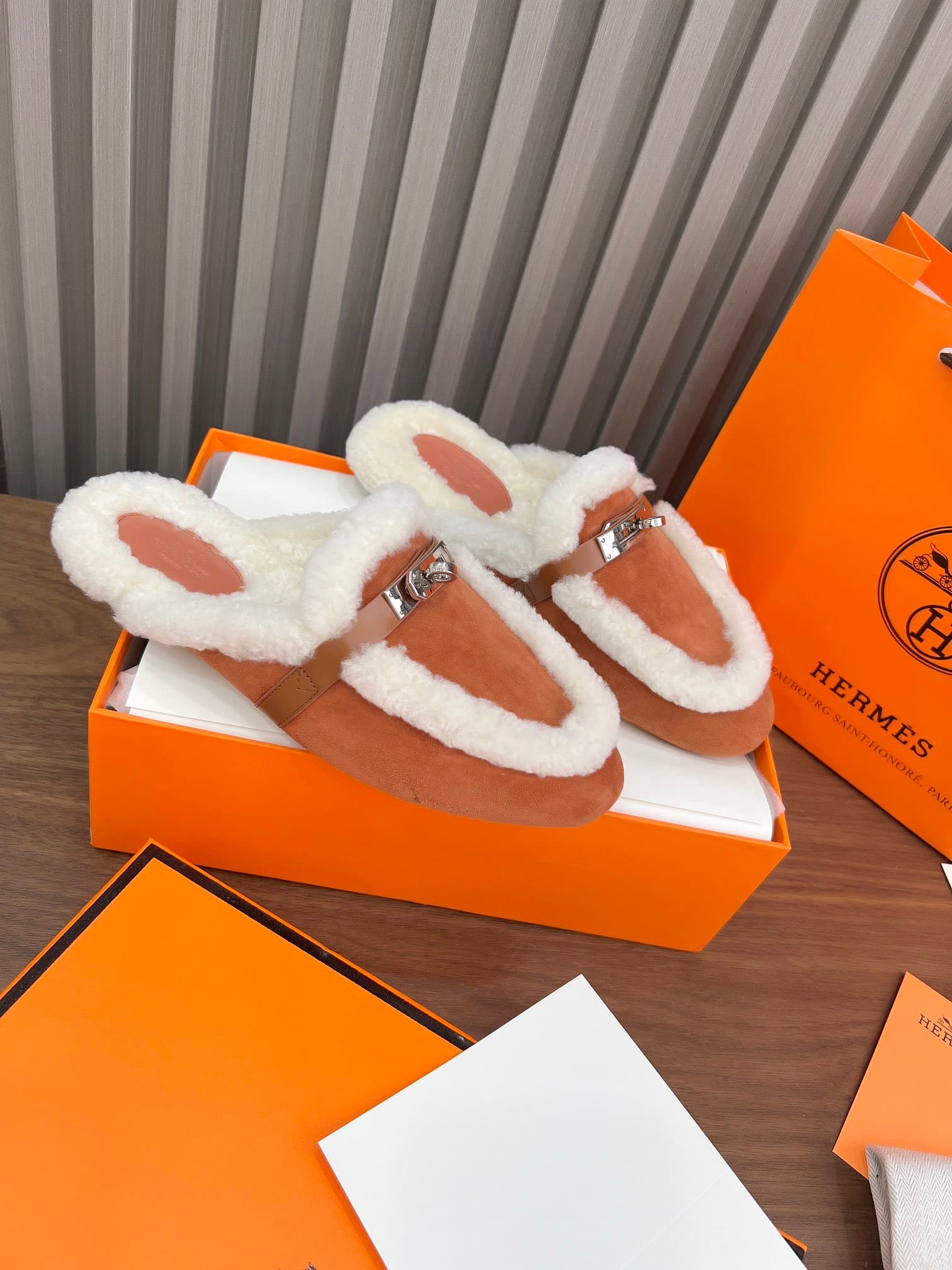 Hermes Oz Mule Shearling Brown White