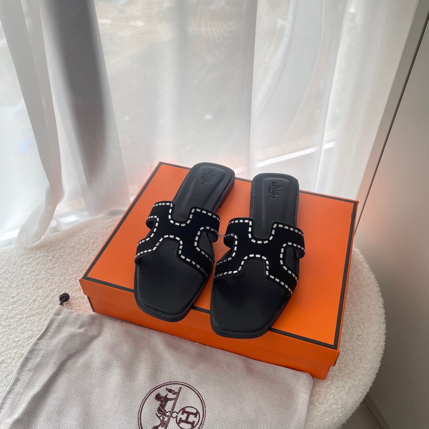 Hermes Oran Sandal Crystle Black H212010Z 02360
