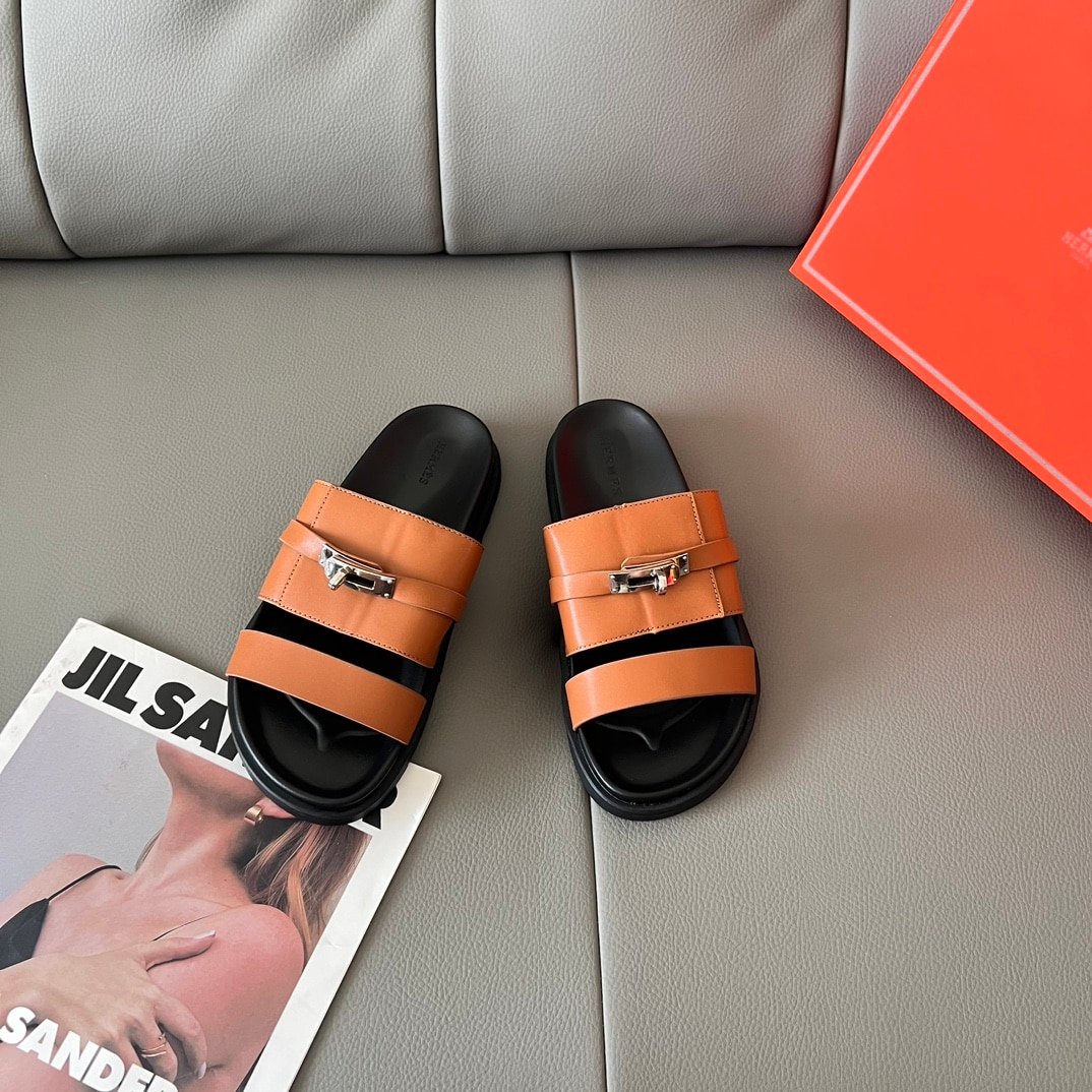 Hermes Slippers Flat Oran Brown H021056Z