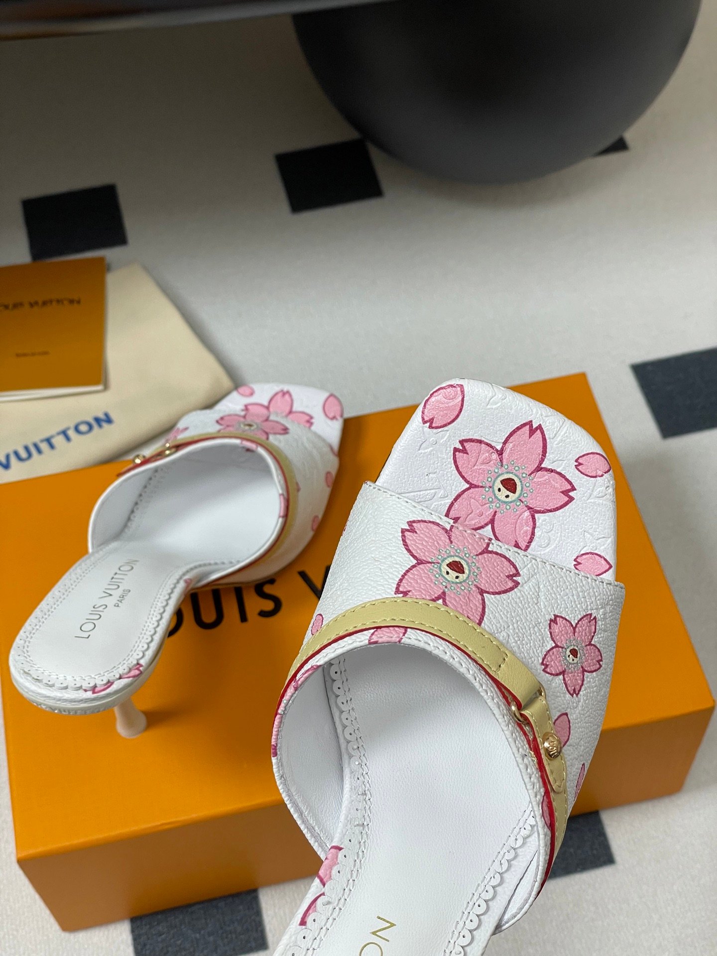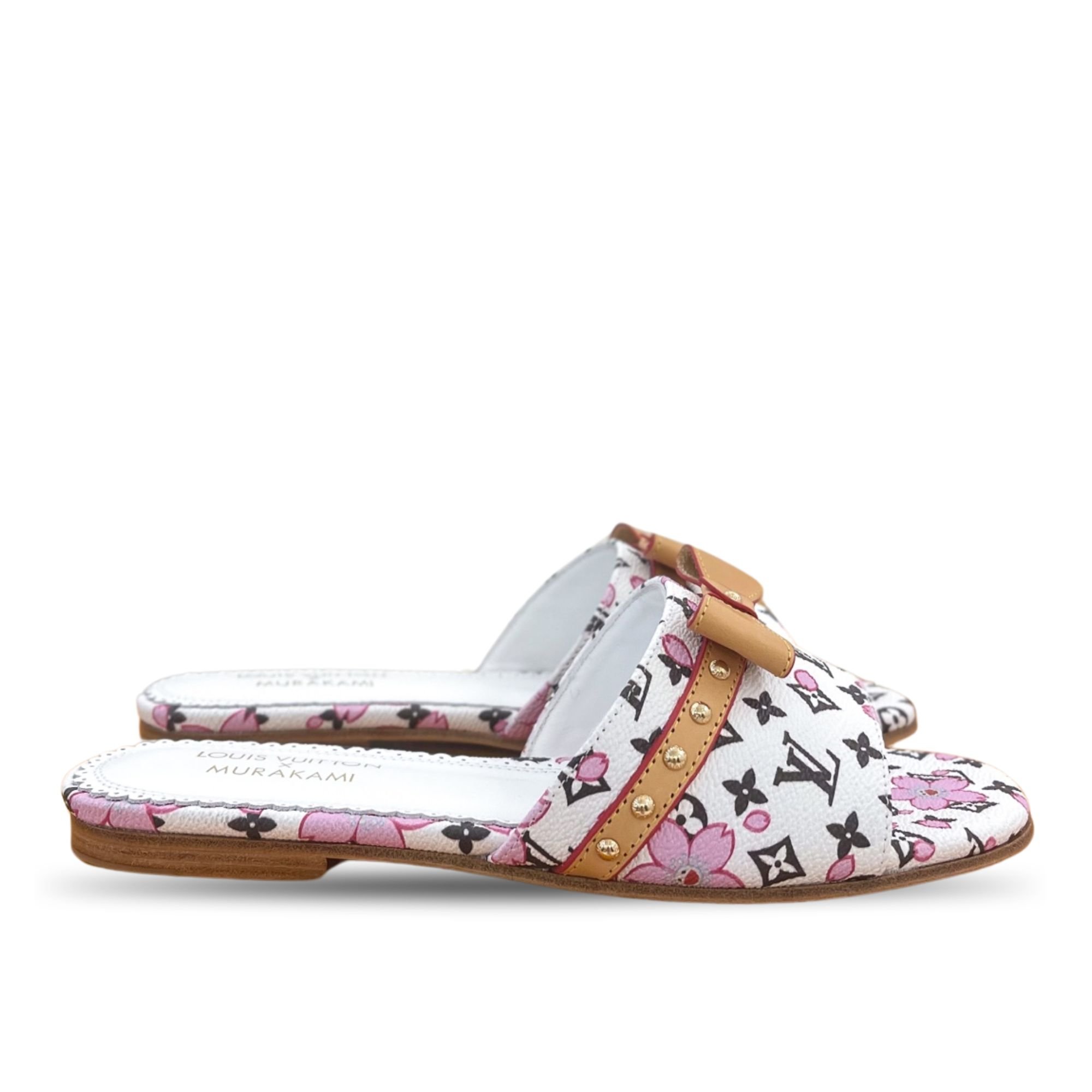 Louis Vuitton x Takashi Murakami Cherry Blossom Mule White Monogram Canvas