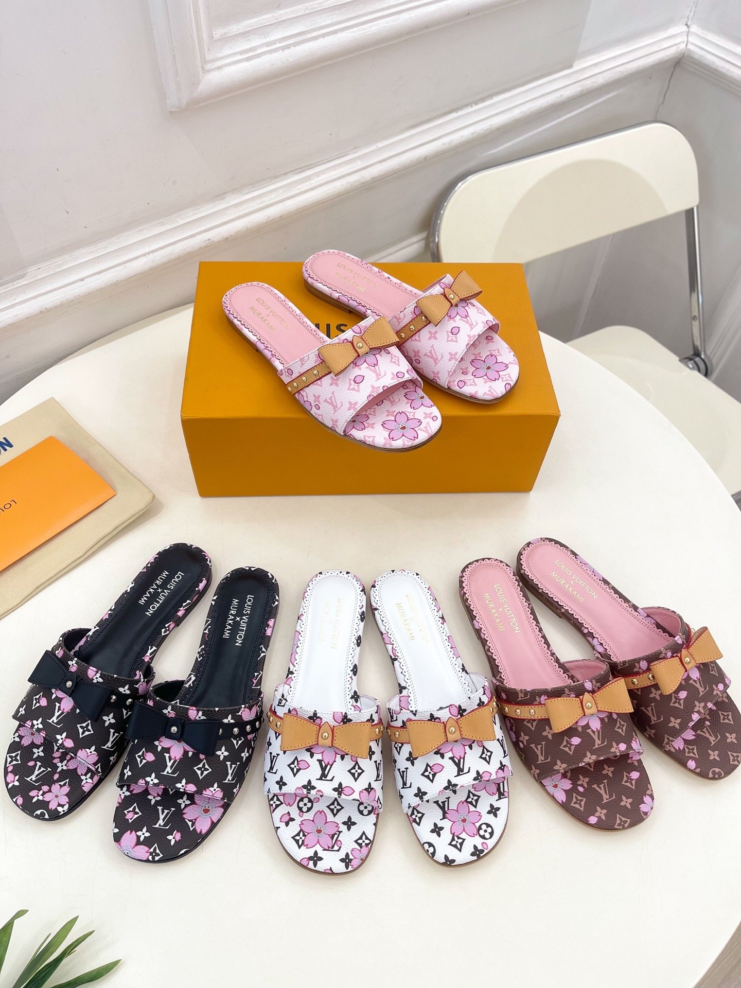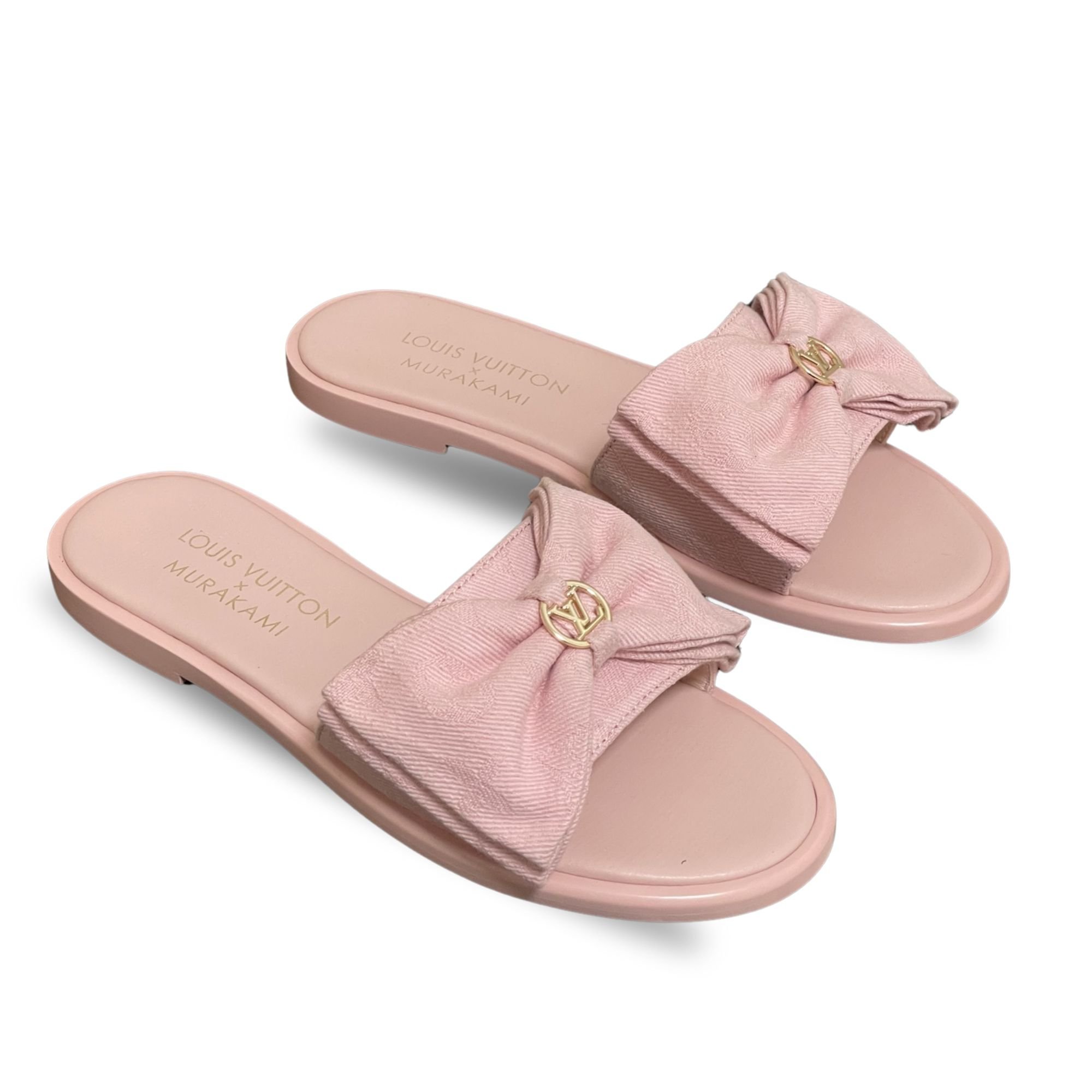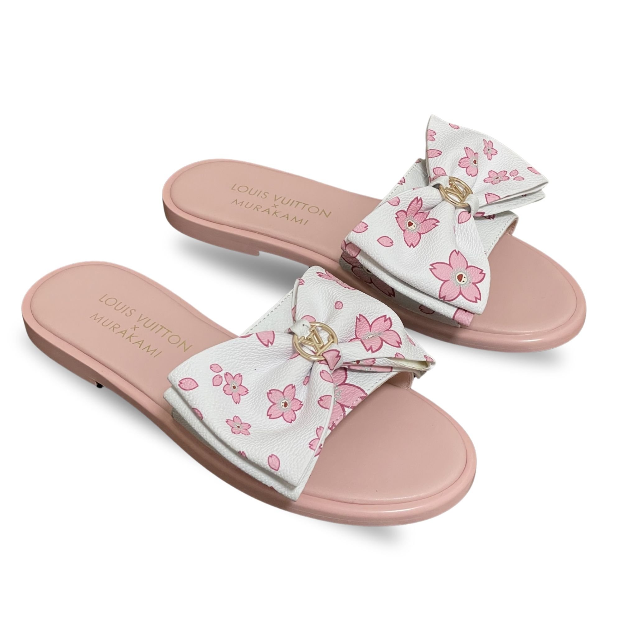 Louis Vuitton x Takashi Murakami Lily Flat Mule Bow Slide Sandals Pink- White 1AGVYA