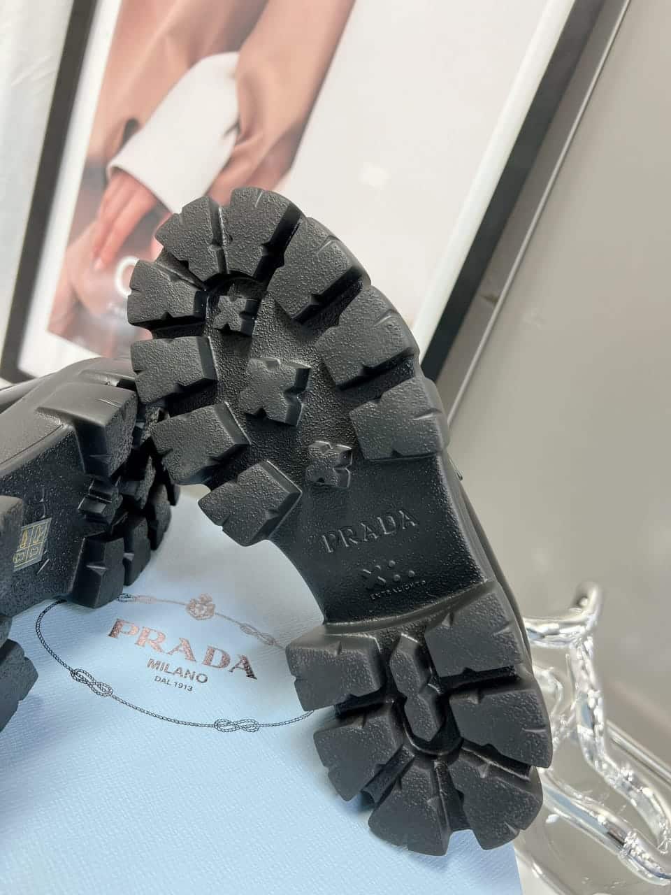 Prada Brushed-Leather And Re-Nylon Boots Shiny Black